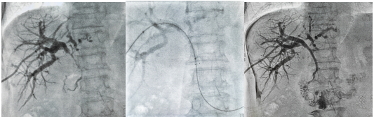 在胡育斌主任医师带领下,医师团队首先实施“超声联合DSA引导PTCD术”置入胆道引流管快速退黄,后复查胆道造影准确判断右肝管、肝总管及胆总管上段狭窄,并精准测量狭窄的长度,制定胆道支架植入策略。经过充分准备后,成功为患者实施胆道支架植入术。目前,该患者已康复出院。