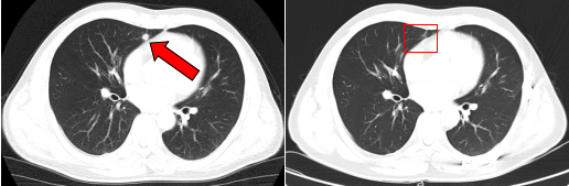 治疗前后的肺部转移病灶图像对比( 左:治疗前,右:治疗后)