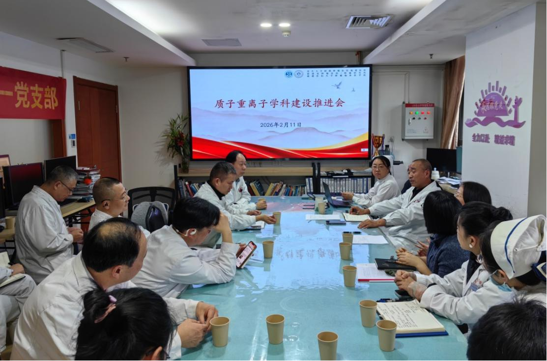 2026年2月11日,我院放疗科党总支与大科召开联席会,聚集持续推动重离子质子项目筹备工作。会议由放疗科主任吴君心、放疗科党总支书记邱素芳共同主持,放疗科党总支委员、各亚专科及病区负责人、支部书记、护士长等参会。