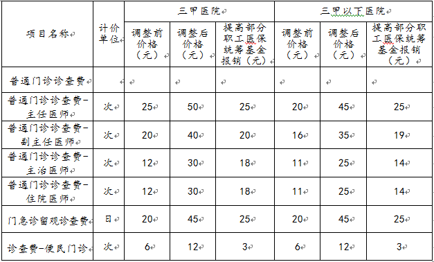 二、调整后的普通门诊诊查费、门急诊留观诊查费、便民门诊等项目价格情况详见下表: