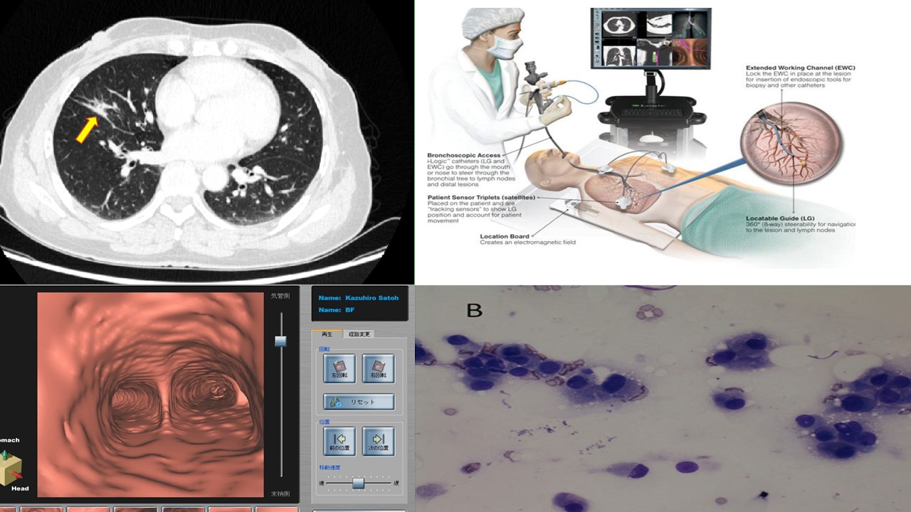 患者体检发现肺部一结节,直径大约1厘米左右,性质不明,到多家医院就诊都无法明确诊断。病灶靠近胸膜叶间裂,病灶直径又小,传统经皮肺穿刺易造成气胸以及瘤体脱落种植到胸膜,常规气管镜也无法取到组织进行确诊,因为病灶位于外周。