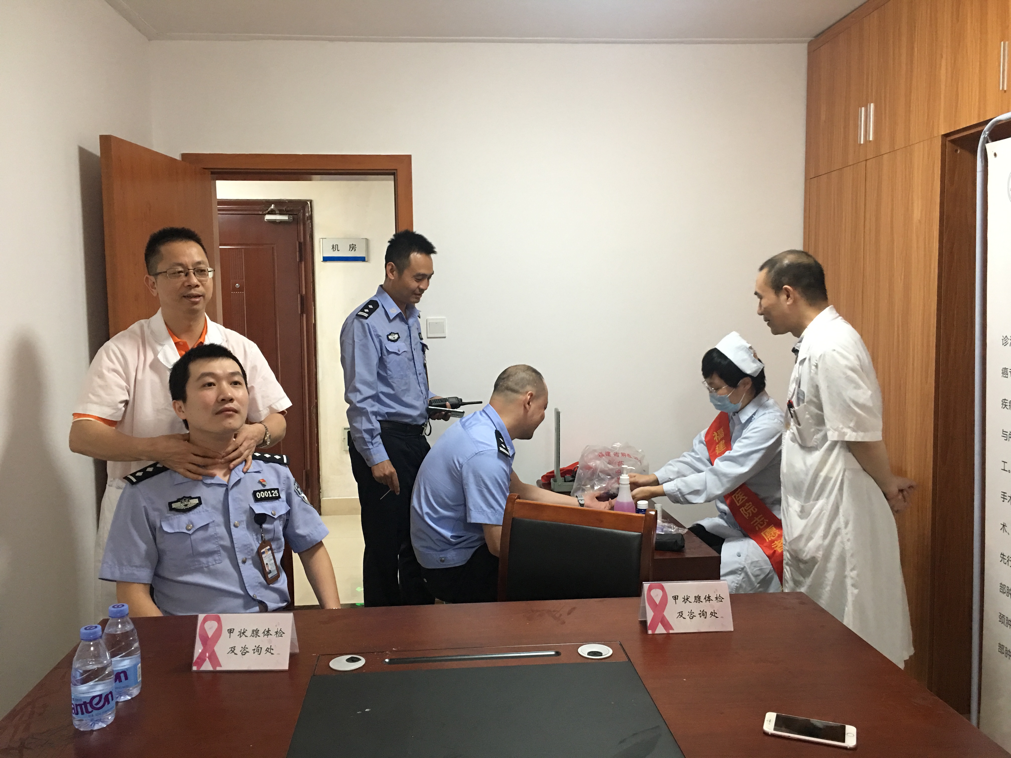 活动现场,外科七党支部书记、十二区主任刘辉主任医师带领林秀安主任医师、施友元副主任医师、叶钦副护士长和安潇护师等为福建省公安厅出入境管理局的一线警务人员进行肿瘤防治咨询服务。医务人员除了向一线警务人员进行甲状腺专科知识科学普及之外,还为现场咨询人员的健康问题进行答疑解惑,询问他们的身体状况并进行甲状腺触诊,耐心细致地讲解卫生保健知识、注意事项、合理用药、饮食安全等健康知识,获得了在场警务人员的好评。护理科普小组成员们为一线警员进行血压测量、测血糖、饮食指导、防癌宣传、健康教育等服务。