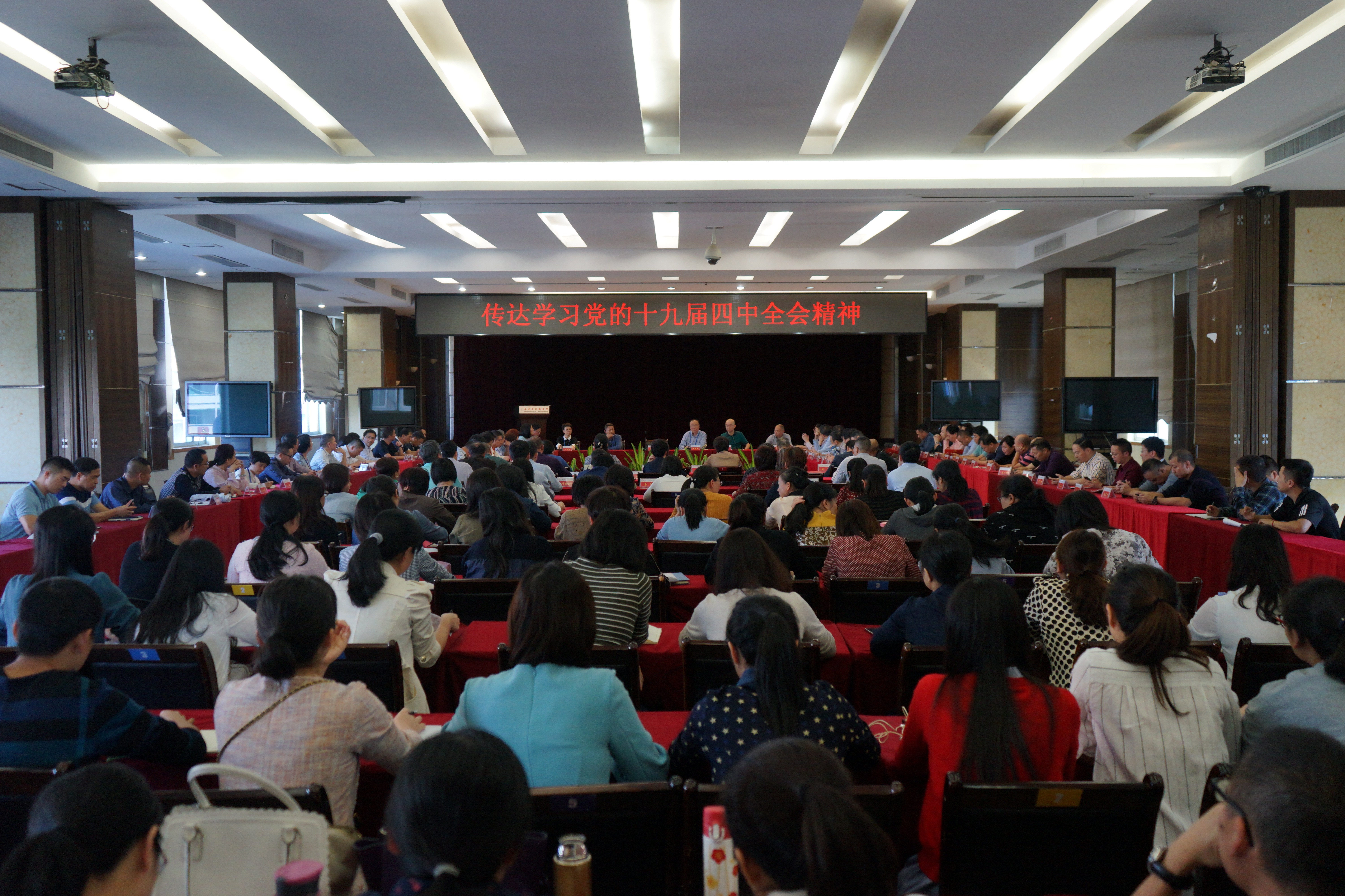 11月4日下午,院党委组织召开会议,传达学习党的十九届四中全会、省卫健委党组学习会议精神。院党委书记郑雄伟主持,院党委班子成员、支部书记以及中层管理干部等160余人参加了会议。