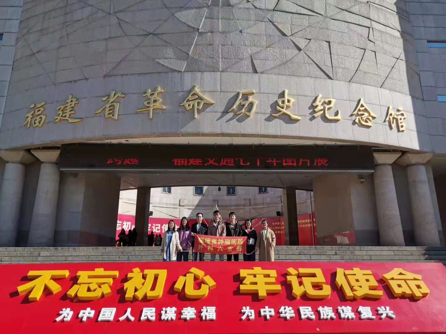 为深入学习贯彻党的十九大精神,强化党员干部的党性、廉洁意识,牢固树立“四个意识”,坚定“四个自信”。12月7日,我院外科六党支部组织全体党员参观了福建省革命历史纪念馆,开展了“不忘初心,牢记使命”主题党日活动。 在福建省革命历史纪念馆,党员们浏览了福建近现代革命史图片,参观了“中共福建地方党组织的创建”、“苏区时期的福建省革命历史活动”、“艰苦卓绝的三年苦斗”、“组织抗战与自卫反顽”、“开展爱国游击战迎接解放”五大部分展陈内容,认真学习福建省革命历史,回顾先辈们为革命事业抛头颅、洒热血的感人事迹,进一步坚定了共产主义的理想信念。 党员们还重温了入党誓词,牢记初心使命,做一名合格党员。通过此次活动,大家纷纷表示,要学习革命先烈们奋斗、奉献的革命精神,不忘初心、牢记使命,立足岗位、努力奋斗,为医院的发展贡献出自己的一份力。