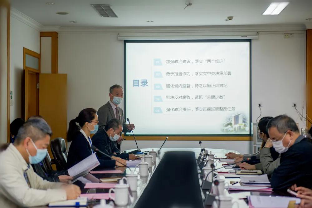 会上,院长、党委副书记陈传本围绕坚持加强党的政治建设落实“两个维护”、学习贯彻习近平新时代中国特色社会主义思想、落实党中央决策部署、强化党内监督,持之以恒正风肃纪、坚决反对腐败,紧抓“关键少数”、强化政治责任,落实巡视巡察整改任务等方面向检查组汇报了我院2019年度全面从严治党主体责任落实情况。