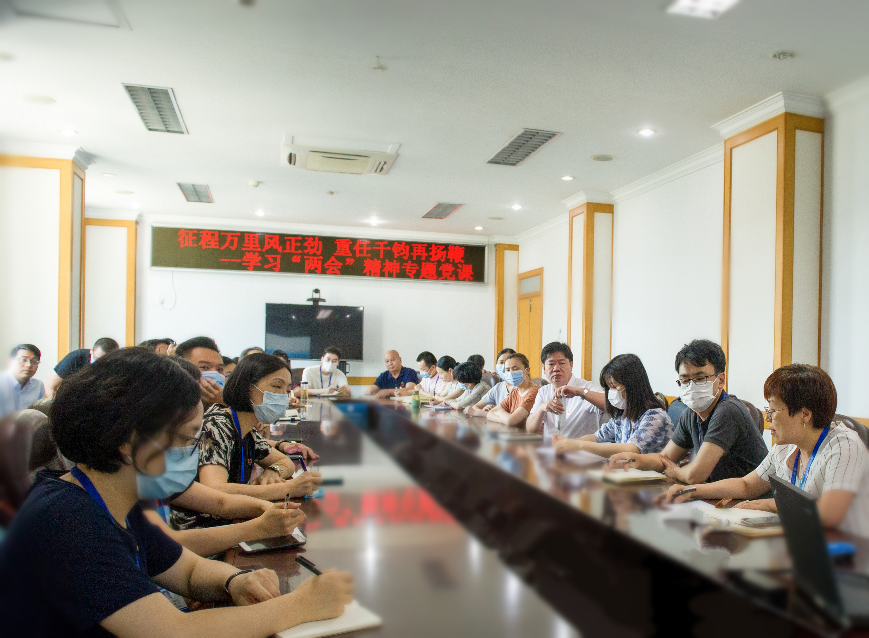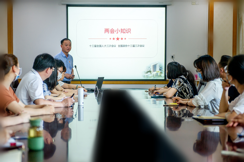 6月17日下午,我院院长、党委副书记陈传本在科研楼11楼会议室为党工群、院办、人事、放疗三等党支部党员上《征程万里风正劲 重任千钧再扬鞭——学习“两会”精神》专题党课。