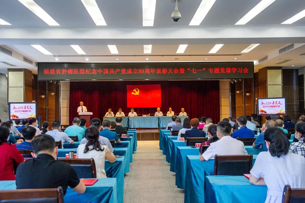 为庆祝建党99周年,回顾党的光辉历程,传承党的优良传统,6月30日下午,福建省肿瘤医院召开庆祝中国共产党成立99周年表彰大会,院党委班子、各党支部书记、受表彰代表及预备党员参加,会议由党委委员、副院长蒋忠铭主持。