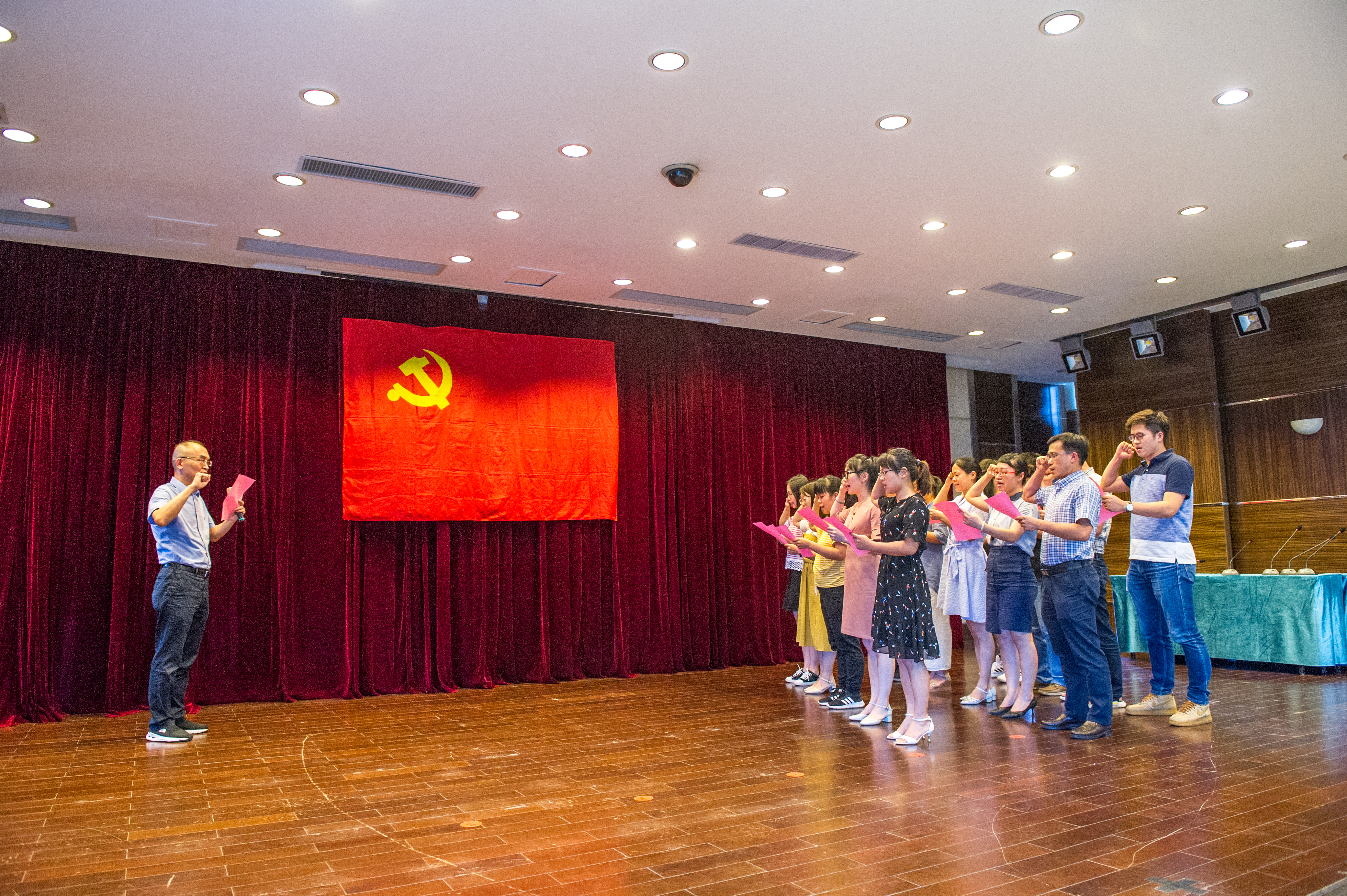 随后,在院党委组织委员、副院长林伟的带领下,14名预备党员面向党旗庄严宣誓,表明了自己献身共产主义事业的决心。