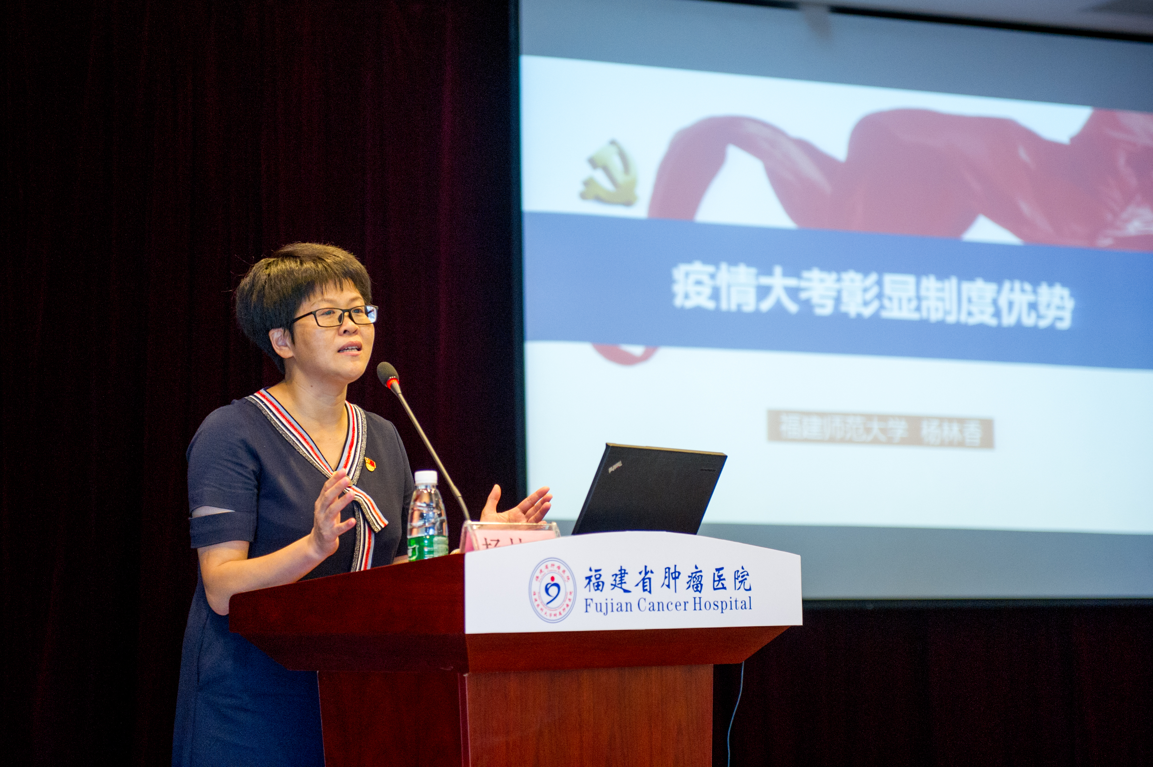 表彰会后,我院特邀福建师范大学协和学院副院长杨林香教授作《疫情大考彰显制度优势》专题党课。杨教授结合疫情期间国内外抗疫实例,从彰显坚持党的集中统一领导的制度优势、彰显密切联系群众的制度优势、彰显集中力量办大事的制度优势、彰显构建人类命运共同体的制度优势四个方面进行讲授,生动阐述了制度优势是一个国家的最大优势,制度优势始终是我们党和人民经受住各种风浪考验的信心和底气所在。杨教授的授课将理论与实际相结合,内容丰富、论述精辟,富有启发性,让全体党员干部受益匪浅。