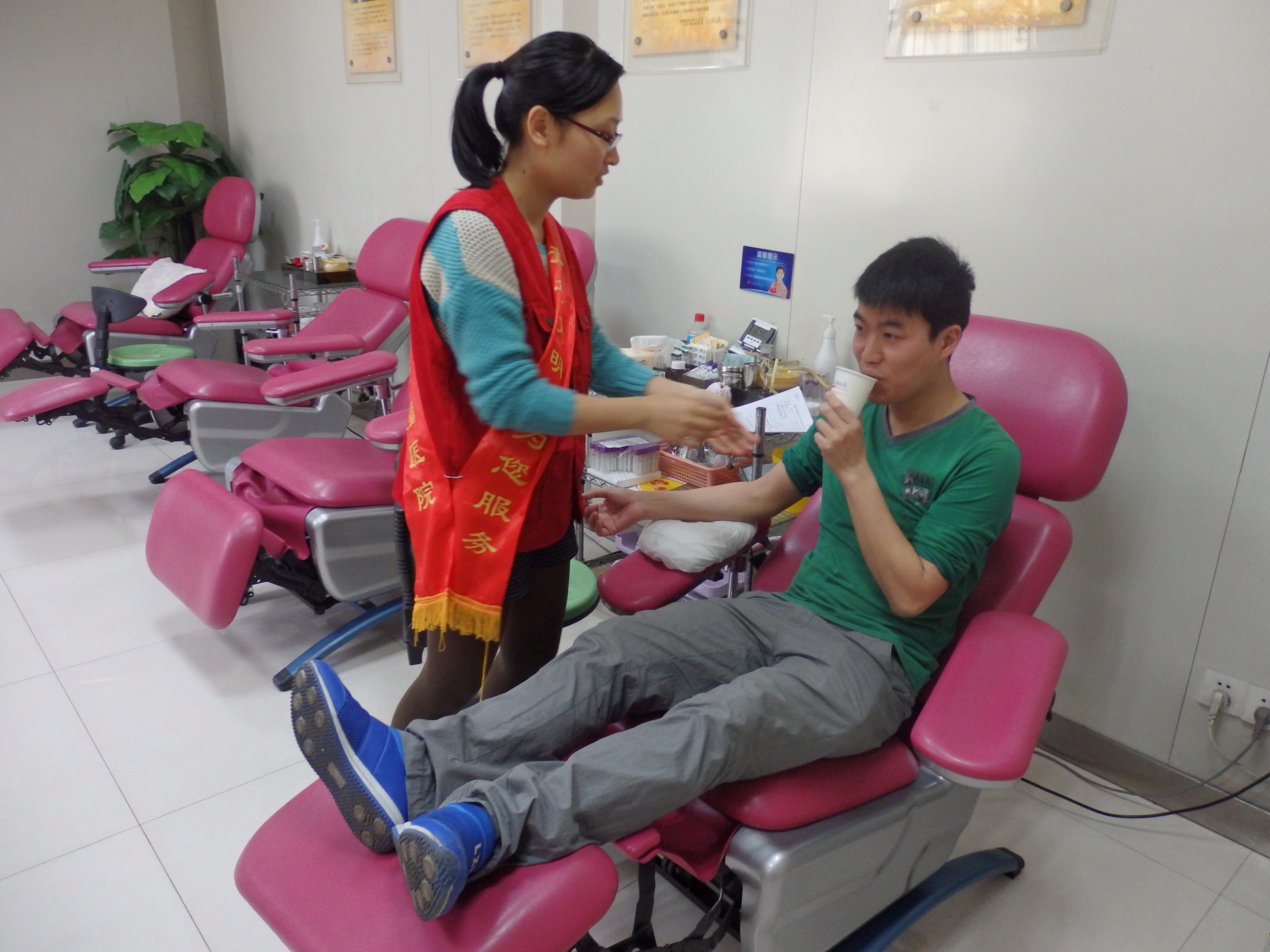 在毗邻学生街热闹繁华的地段,巾帼志愿者们走出献血屋,发放献血宣传册,为市民开展献血咨询。当市民走进献血屋时,志愿者为他们倒一杯暖暖的茶,细致地指导他们填写献血档案;当市民因首次献血紧张时,志愿者犹如好友般与其聊天,消除他们的顾虑;当市民携带较多物品或带孩子的情况下,志愿者为他们照看小孩、衣物,让他们轻松地献血;当市民献完血后疲乏时,一杯贴心的葡萄糖水让其补充能量,劝导其休息片刻,再用暖暖的微笑送他们离开……我们的志愿者用细致贴心的服务,为献血屋勾勒出一道靓丽的风景。