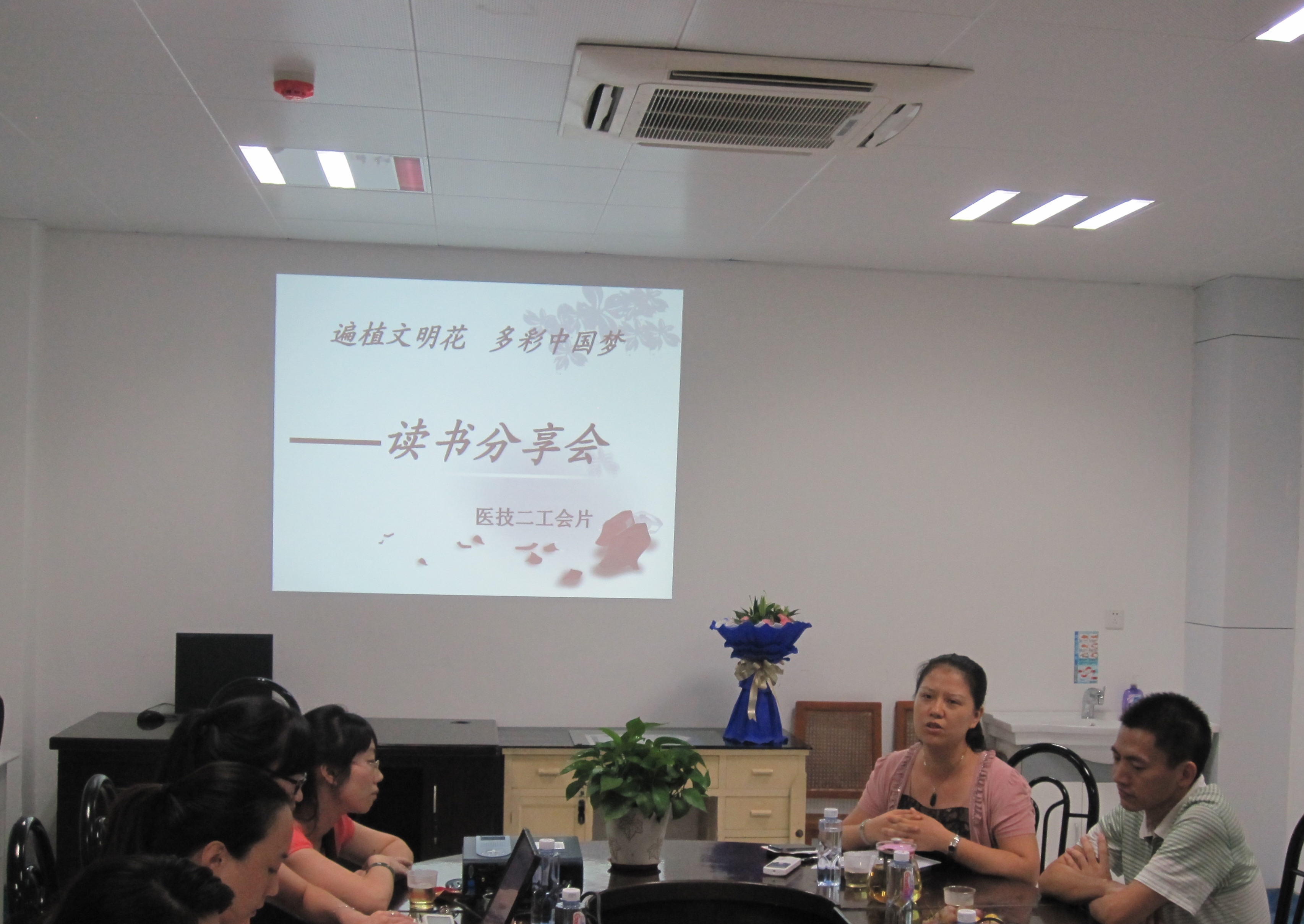 2014年9月10日下午,由医技二工会片举办的“遍植文明花,多彩中国梦——读书分享会”在检验科会议室顺利召开, 活动以“分享阅读智慧 共享文化盛宴”为主题。