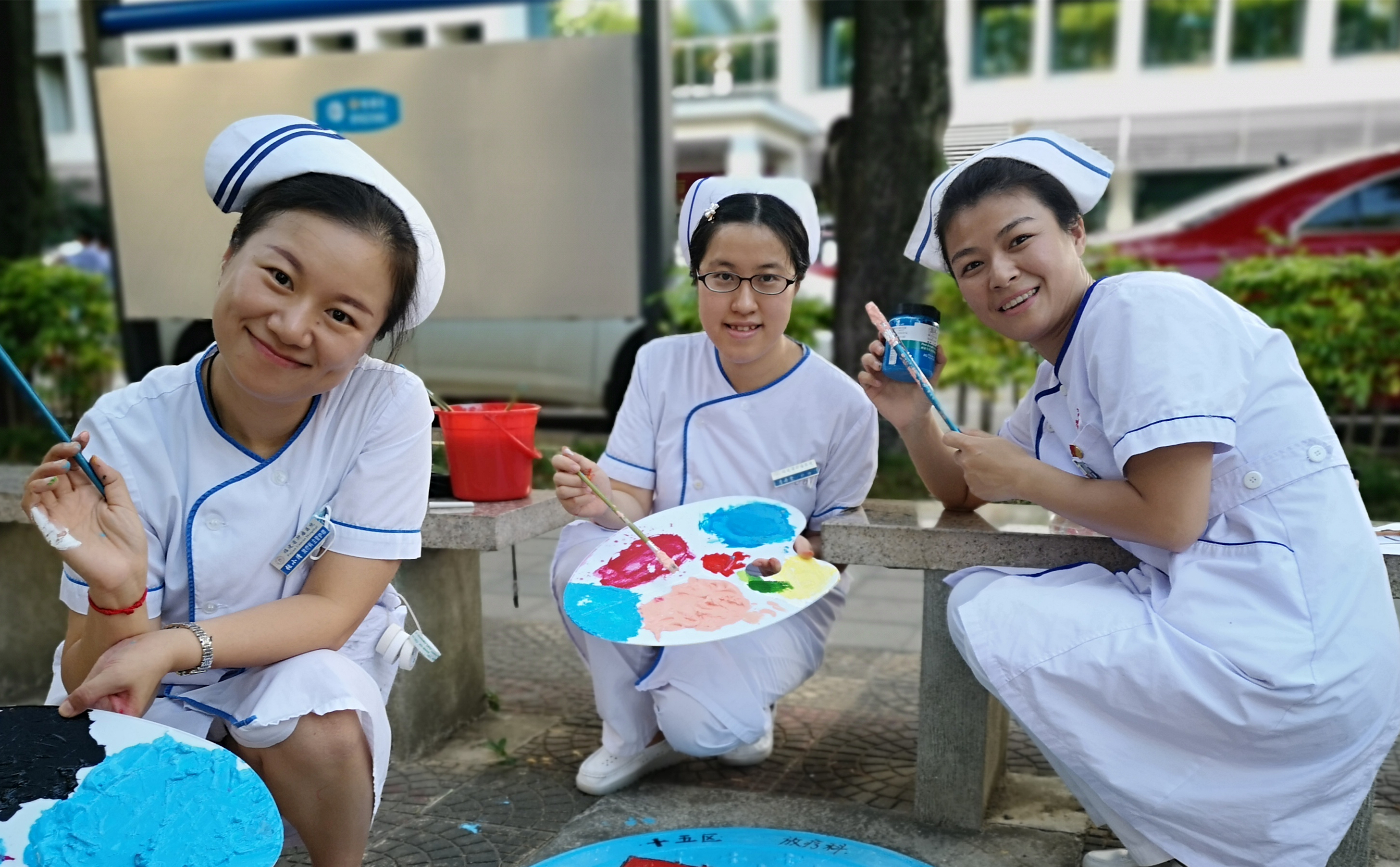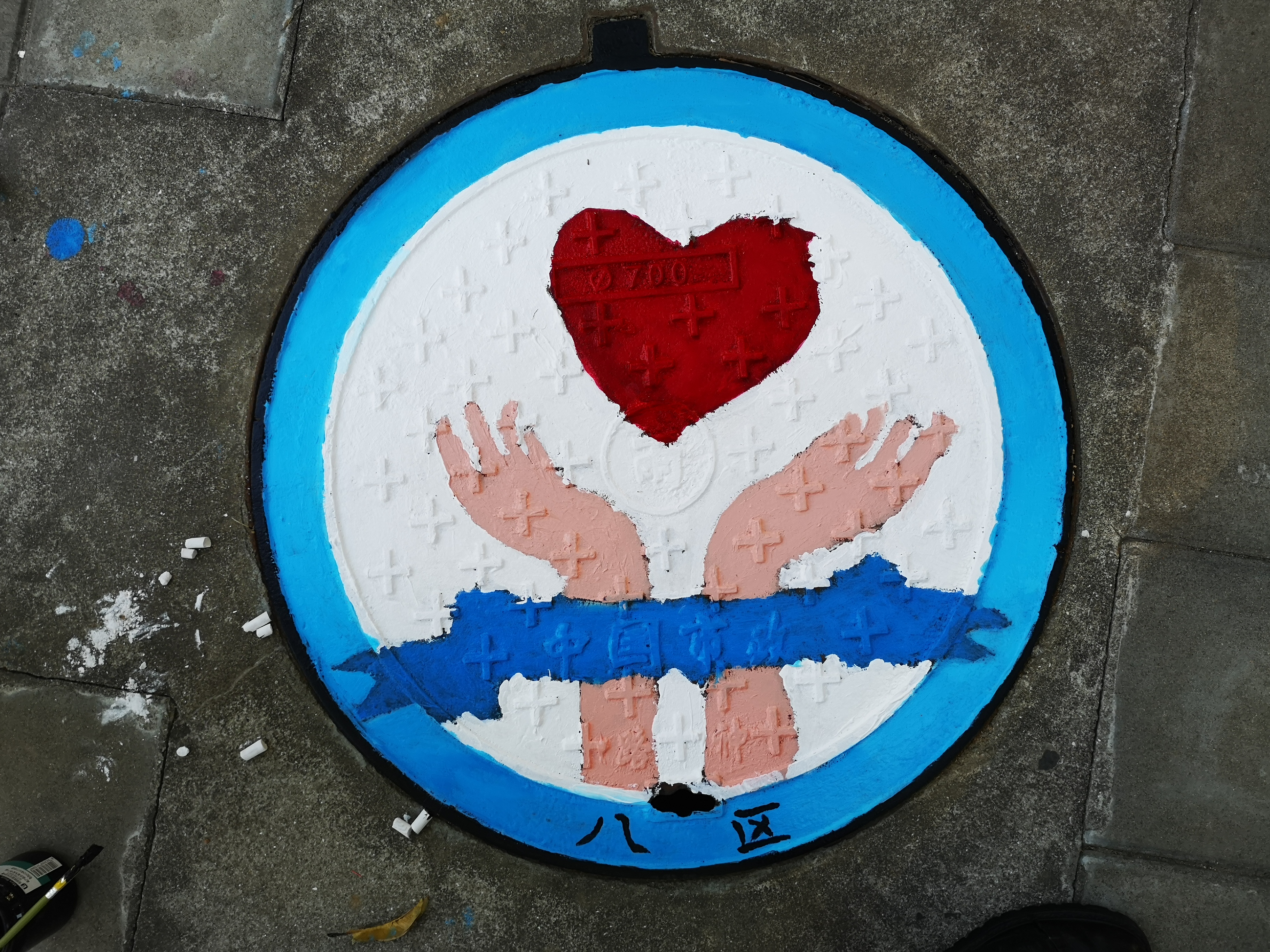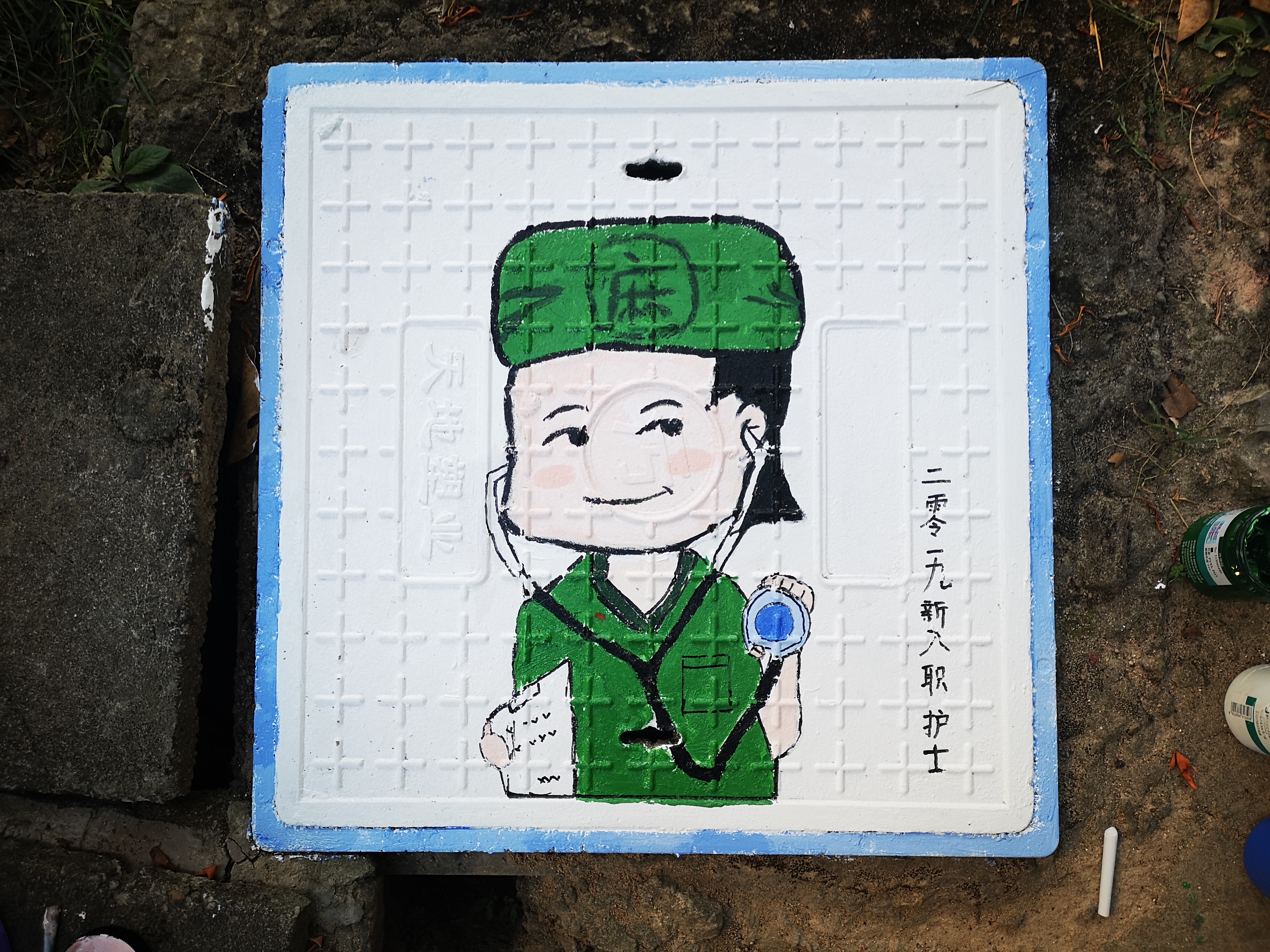 为庆祝新中国成立70周年,营造优美就医环境,9月19日下午,院团委组织三十余名青年医护人员在医院的窨井盖旁,手绘完成10幅惟妙惟肖的井盖画。美丽多彩的画作和医护人员们忙碌而专心致志的身影,吸引了不少路过的病人和家属驻足欣赏。