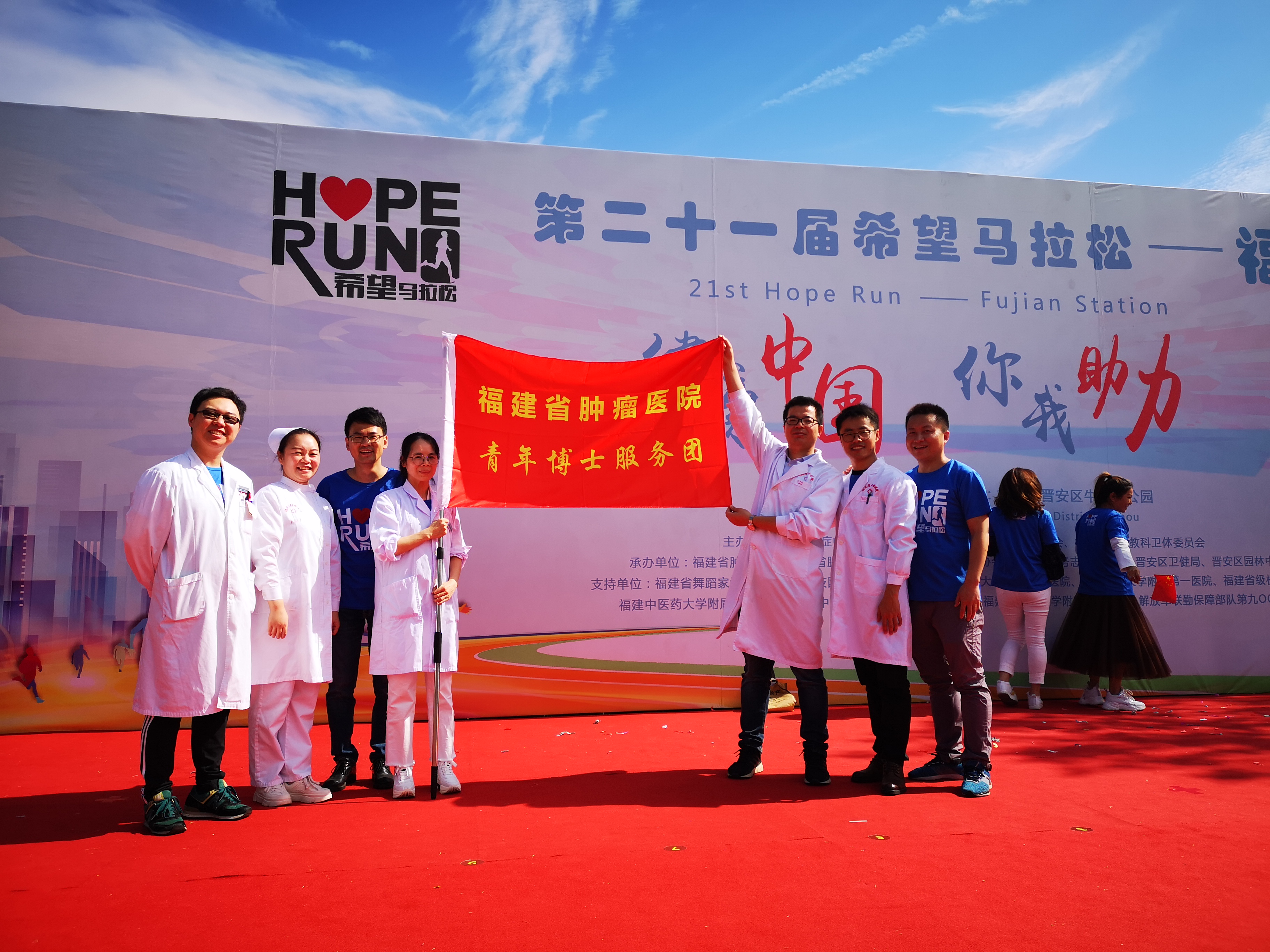 11月2日,由我院主办,福建省政协教科卫体委员会、福建省肿瘤医院、福建省肿瘤防治研究办公室、福建省抗癌协会、福建省医务志愿者协会、晋安区卫健局、晋安区园林中心、福建省舞蹈家协会、福建省杂技团等多家单位共同组织,主题为“健康中国 你我助力”的2019年第二十一届希望马拉松(福建行)在福州市晋安区牛岗山公园鸣枪开跑。来自社会各界从事或关心防癌抗癌事业的爱心人士、医务工作者、癌症康复患者及家属等1500多位市民参加了此次爱心义跑活动。