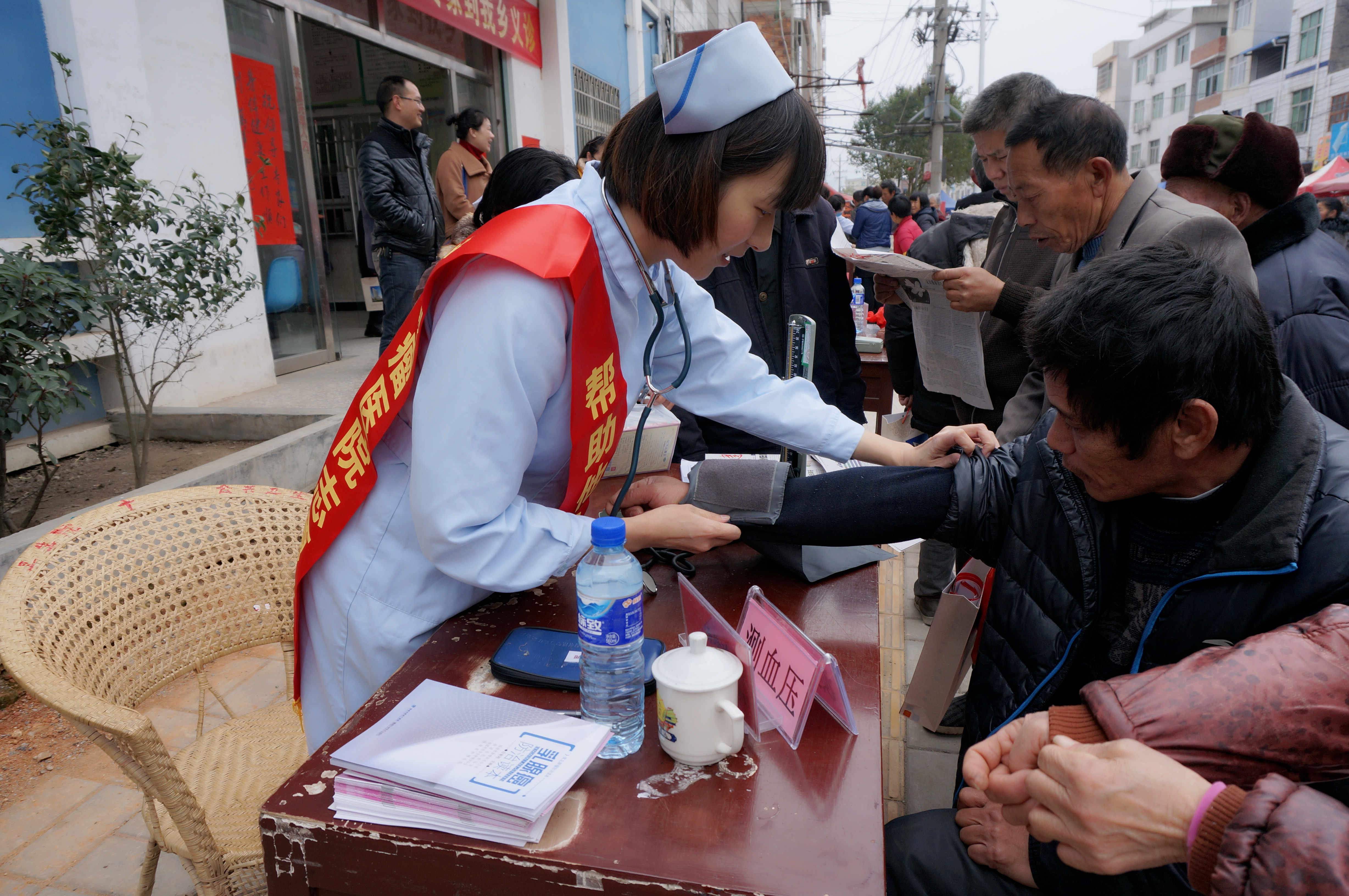 活动当天,叶阿琴副书记首先代表医院向田茶村10困难家庭发放了帮扶慰问金共计30000元。接着,我院医疗专家在乡卫生院开展义诊活动,前来就诊、咨询的村民争先恐后,里三层,外三层地将义诊医疗队员们团团围住。专家们热情地接待每一位前来就诊的村民,认真地把脉问诊、测血压、开处方、指导用药,耐心细致地解答咨询。整个活动现场呈现出热烈和谐、亲民温馨的氛围。许多村民的脸上洋溢着微笑,平日看病难的村民,如今能够在自家门口得到免费的、高水平的省级专科医疗服务,让他们感到惊喜不已。