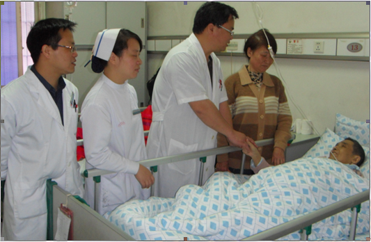 4月24号上午9时左右,服务回访室的工作人员象往常一样,有条不紊的忙碌着。突然一阵急促的敲门声响起,门一开,只见一位年过花甲的阿姨一把抓住工作人员的手,激动地说:“肿瘤医院的医生、护士真好,是他们的全力救治,挽救了我老伴的生命。我们全家衷心感谢林海澜主任、郝明志、胡育斌医生及林丽护士长、张露护士及二十区全体医务人员,感谢医院培养了一群这么好的医护人员,我们这辈子都忘不了他们高尚的医德和对我老伴精心的治疗!”