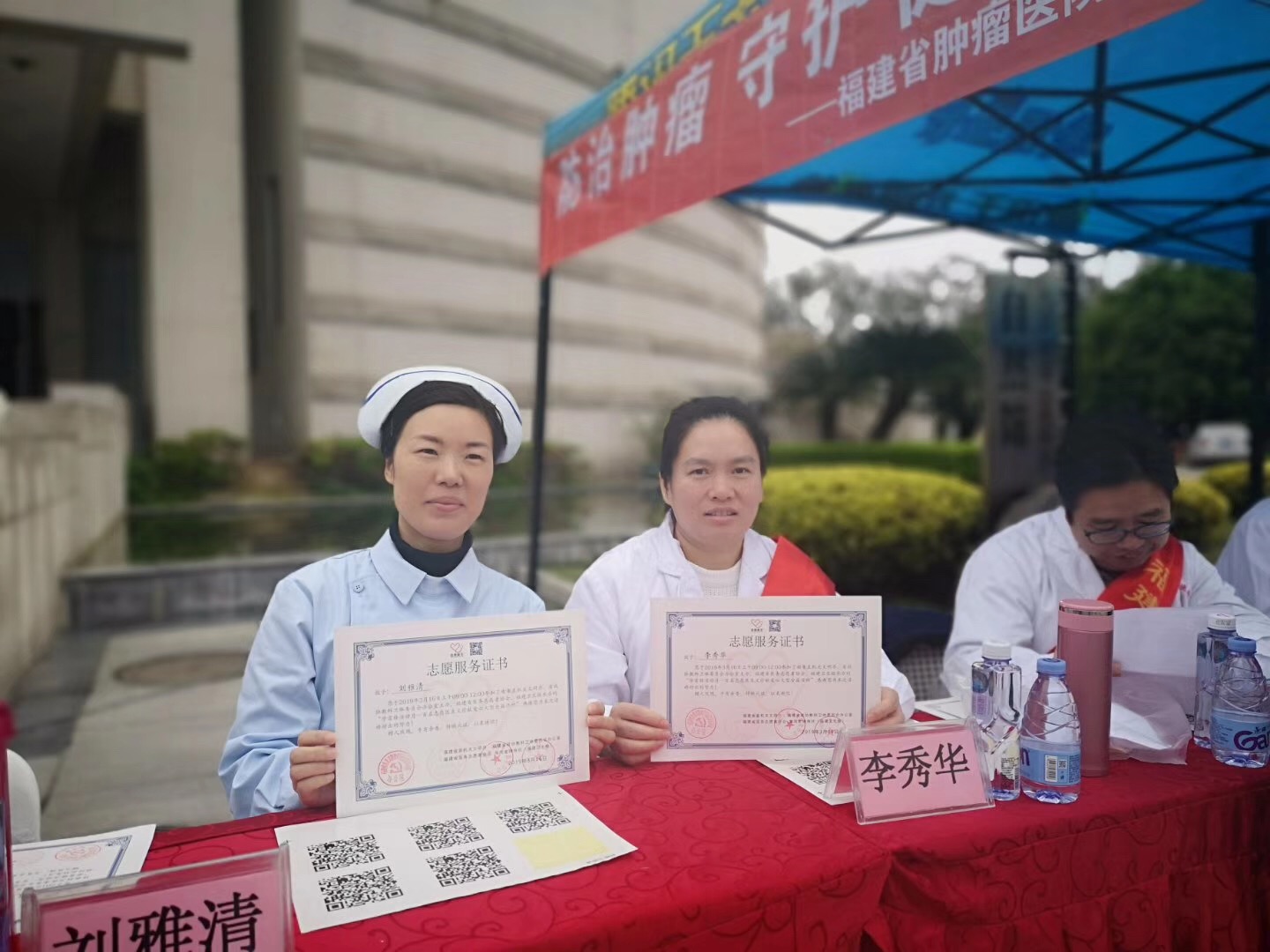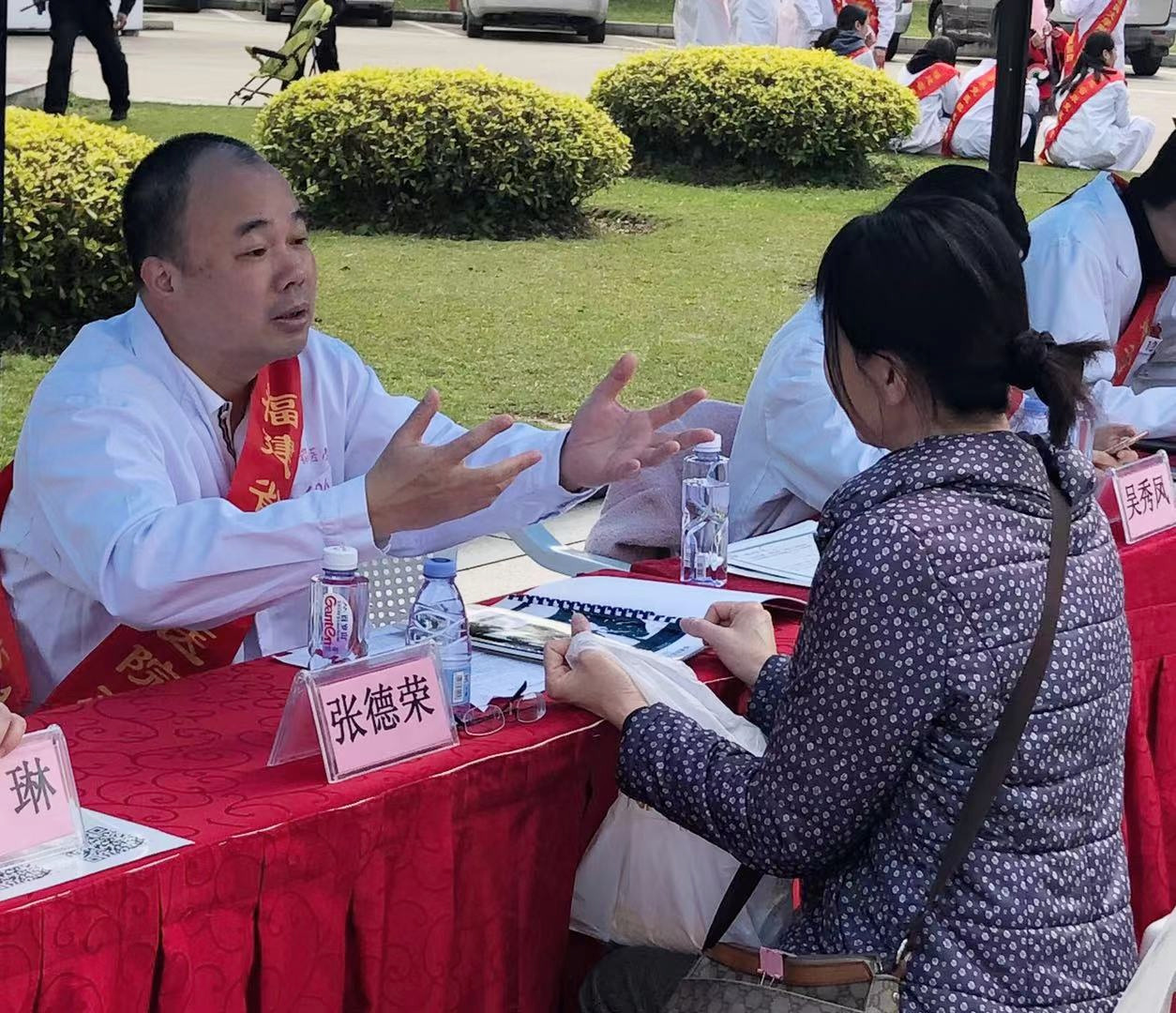 西湖美景三月天,医师义诊百人行。西湖边白衣天使成为靓丽的风景线。在福建博物院广场,市民们排起了队伍,活动现场氛围浓厚,来咨询群众络绎不绝。志愿者们佩戴志愿医生徽章,主动、亲切的态度让市民们心情放松。面对前来咨询的群众,志愿者们通过科普语言细心讲解“恐癌之心不可有,防癌之心不可无”的理念,理性对待肿瘤疾病,倡导健康的生活习惯。我院两位护理工作者免费为市民量血压,同时作为心理专科护士的他们还给市民做健康心理指导。