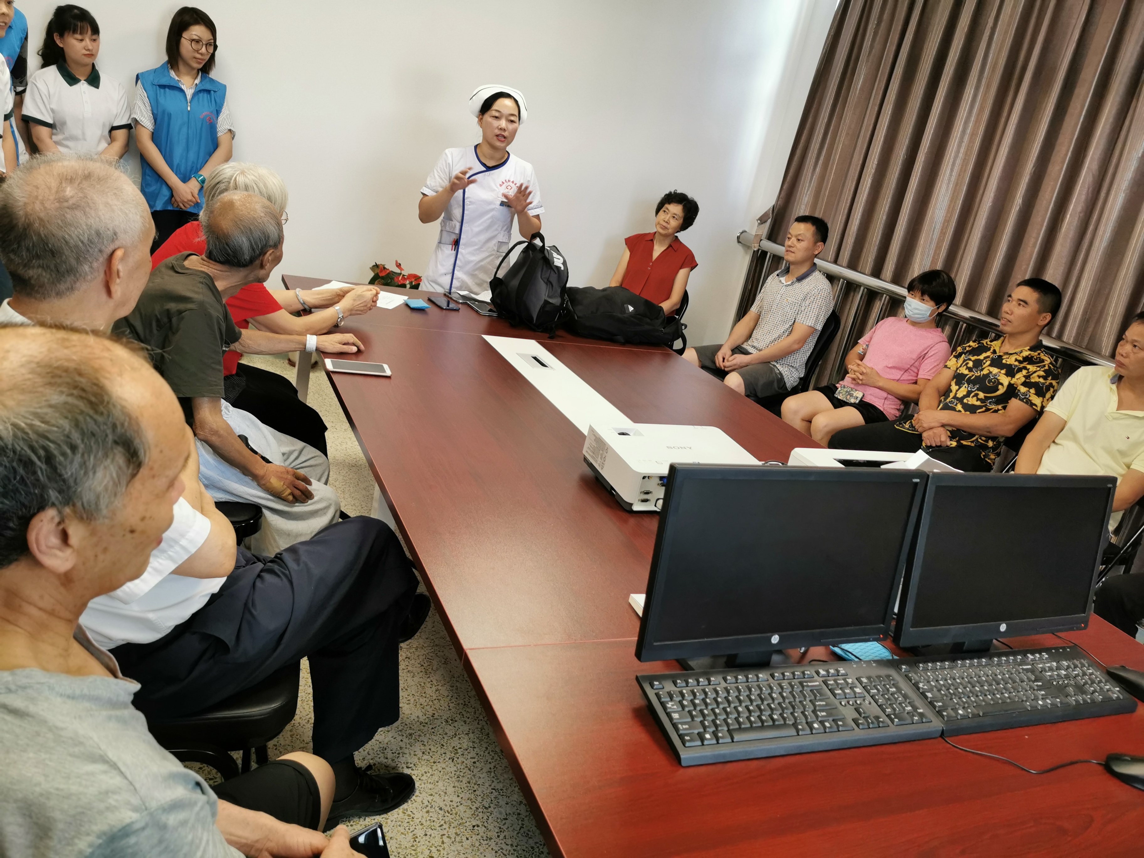 工休座谈会结束后,护理团队和美善社工的志愿者来到病房,将精心准备好的月饼送到每一位患者和家属手中,同时送上真挚问候和节日的祝福。住院患者深受感动,一再表示感谢,病房里欢声笑语,洋溢着浓浓的节日气息。这种爱的传递,让他们真切感受到亲人的关怀与家的温暖。