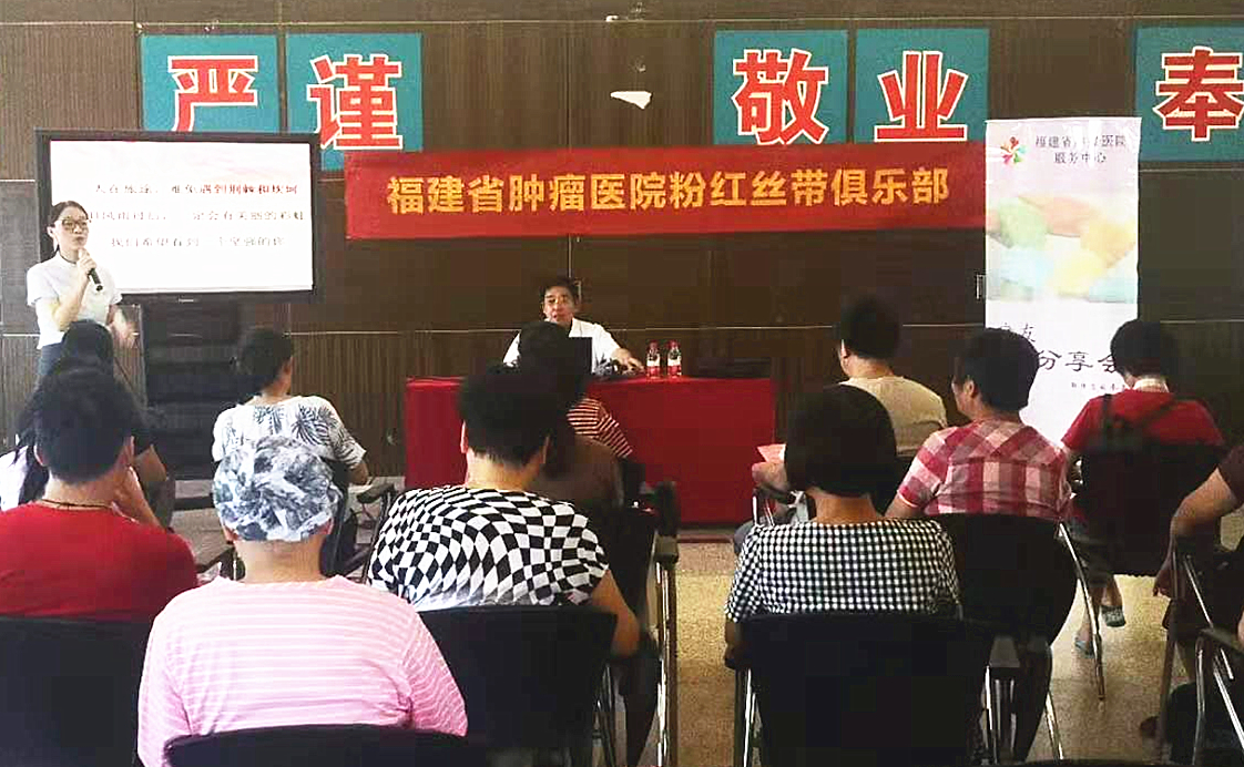 9月19日下午,我院服务中心在影像楼六楼会议室举办乳腺肿瘤病友分享会。现场邀请我院乳腺外科陈夏主任医师进行“乳腺疾病的预防和治疗”专题讲座。精彩的讲座和良好的现场互动赢得病友及家属们的阵阵掌声。