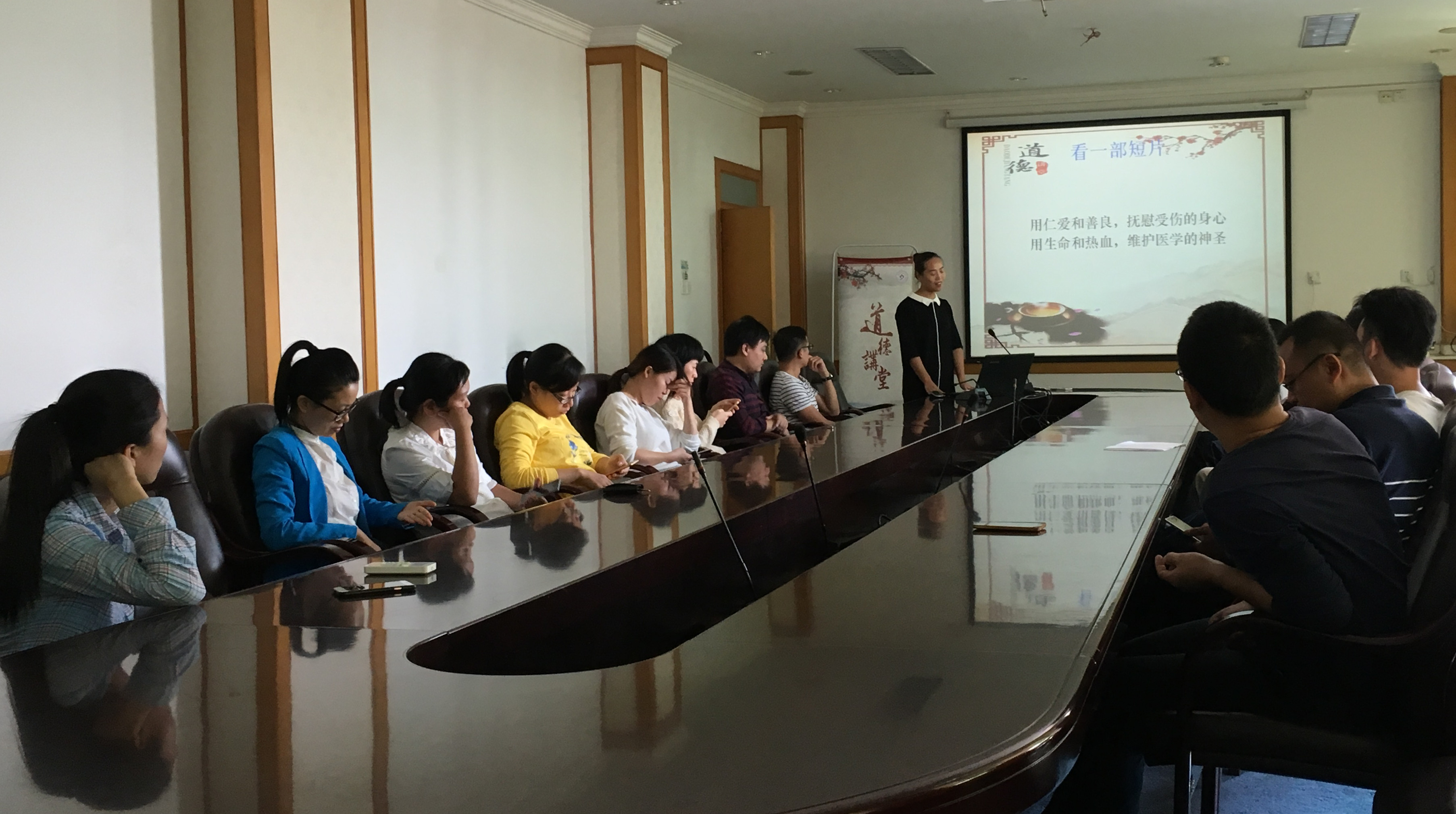 本期道德讲堂围绕“唱歌曲、看短片、诵经典、省吾身以及做承诺”五个环节展开。活动在全体参会党员合唱一曲《爱的奉献》中拉开序幕,随后观看2016年最美医生获奖人吴孟超院士的先进事迹,学习了道德模范的仁心仁术、精诚大爱的奉献精神。接着,大家一起诵读了晋代名医杨泉《物理论》中论医的片段,感悟到想要成为一名良医,身负治病救人的大任,就应心怀仁爱之心。最后,宣读了《永恒的誓言》片段---用仁爱和善良,来抚慰受伤的身心,用生命和热血,维护医学的神圣。