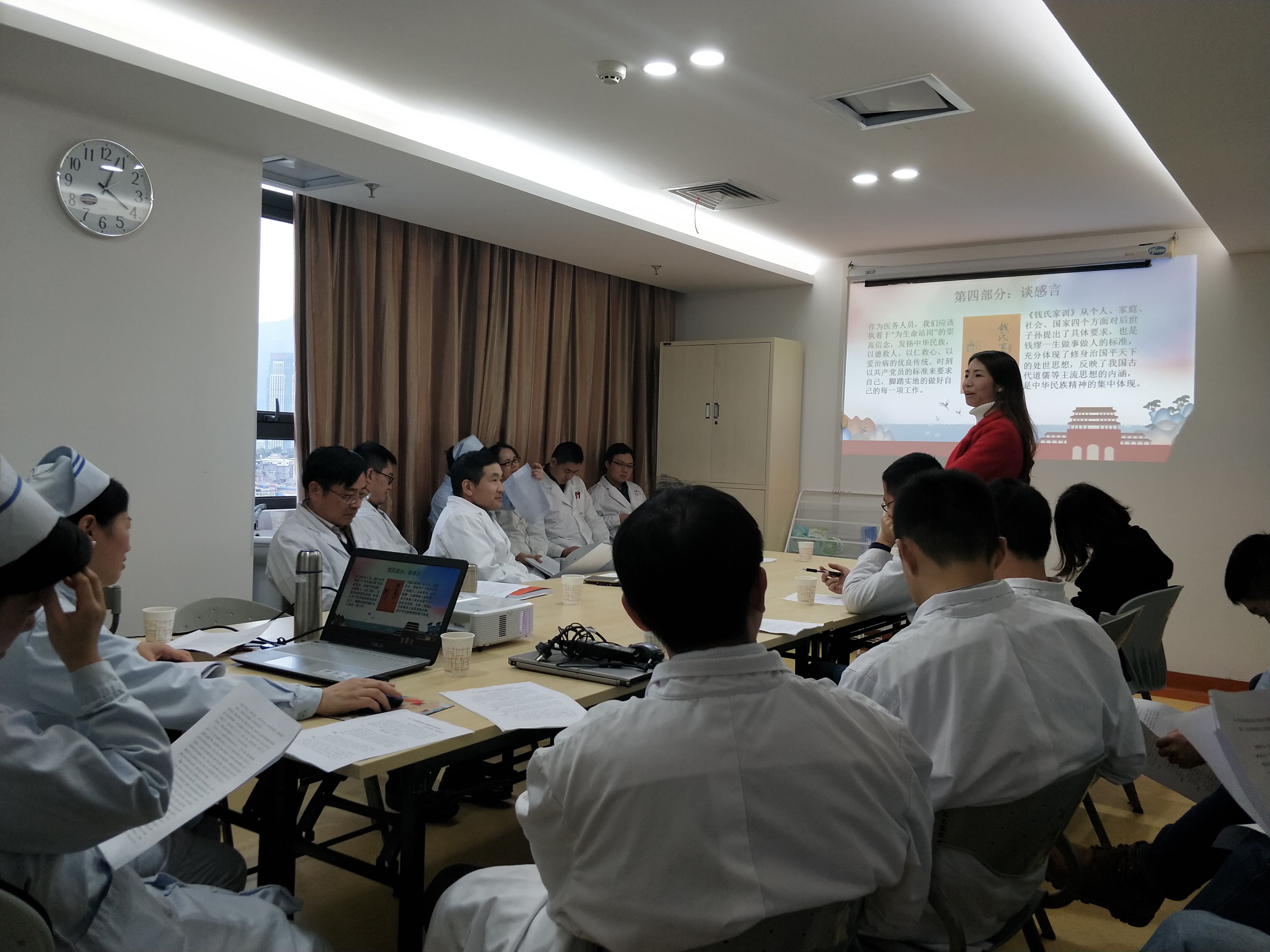 歌曲《我的中国心》燃起了大家满满的爱国主义,《钱氏家训》则让我们学习了个人、家庭、社会、国家四大部分的意义及立身处世、持家治国的思想行为;杜丽群护士长的榜样学习力量让我们明白医者的无私与伟大。在场的同志在满满正能量的讲堂里共同接受心灵洗礼,感悟道德的力量。大家感触深刻,纷纷发表自己的感悟。
