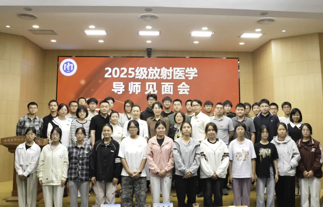 肿瘤临床医学院副院长余宏玉、放射医学教研室副主任邱素芳、教育处陈超,以及2025级放射医学专业导师翁友良、胡彩容、王景、丁剑鸣、陈楚莹、薛文姬等老师出席见面会。基础医学院党委书记郭松斌、副书记曾凌琳等共同参与,与全体放射医学本科新生面对面交流。