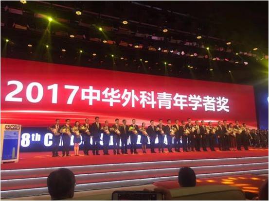 2017年9月22日至24日,由中华医学会、中华医学会外科学分会主办的“中华医学会第十八届全国外科学学术大会”在郑州国际会展中心举行,我院胃肠肿瘤外科叶再生在科主任陈路川主任医师的指导下,从全国各地选送的普外科青年医生精锐中脱颖而出,荣获“2017中华外科青年学者奖”二等奖。