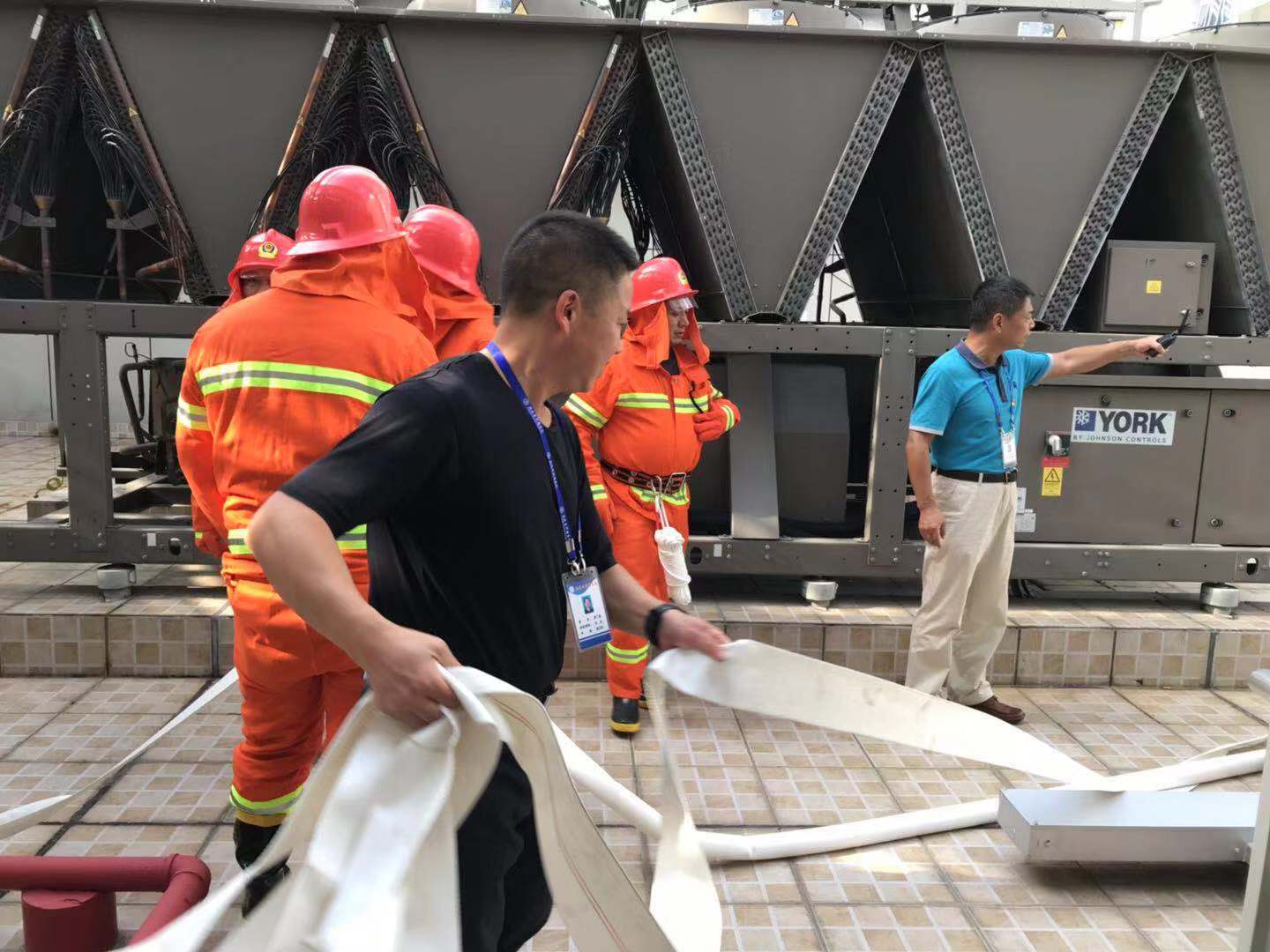为深入推进我院微型消防站建设,进一步提高微型消防站应急处置能力。10月26日下午,我院在新外科大楼裙楼设备层开展微型消防站灭火实战演练。副院长蒋忠铭出席本次演练,演练由保卫科科长余广盛主持,保卫科、保安中队、微型消防站等共计20余人参加。
