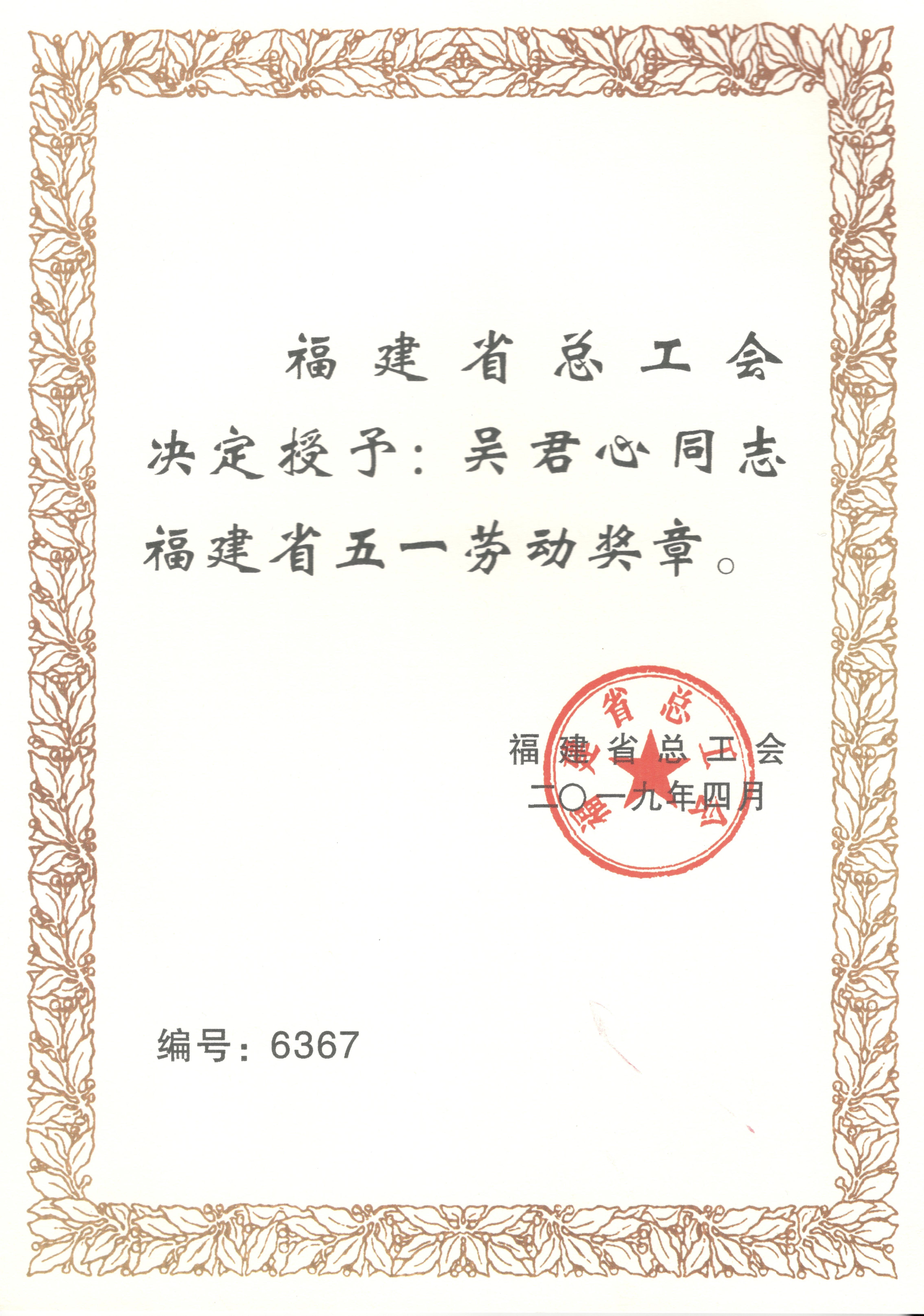 祝贺!我院吴君心同志获福建省五一劳动奖章、服务中心获福建省五一先锋号荣誉称号