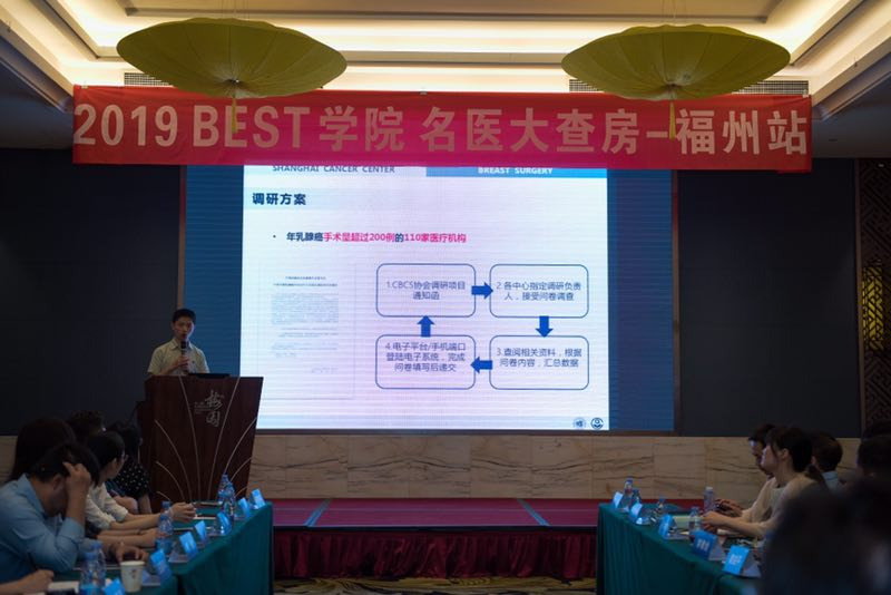 7月6日,BEST学院——名医大查房之福州站在我院成功举办。复旦大学附属肿瘤医院吴炅副院长率领MDT专家团队到我院开展名医查房活动,并与我院MDT团队进行了交流与探讨。我院党委书记、院长郑雄伟会见吴炅副院长一行,就两院的合作与发展等相关问题进行了深入探讨,对今后更深层次的人才交流与项目合作前景寄予厚望。我院乳腺肿瘤外科陈夏主任、乳腺肿瘤内科郑弘宇主任及放疗科、病理科、影像科、超声科等相关科室的三十多位专家参加了大查房,会议同时吸引了省内外多家医院的医生参会观摩学习。