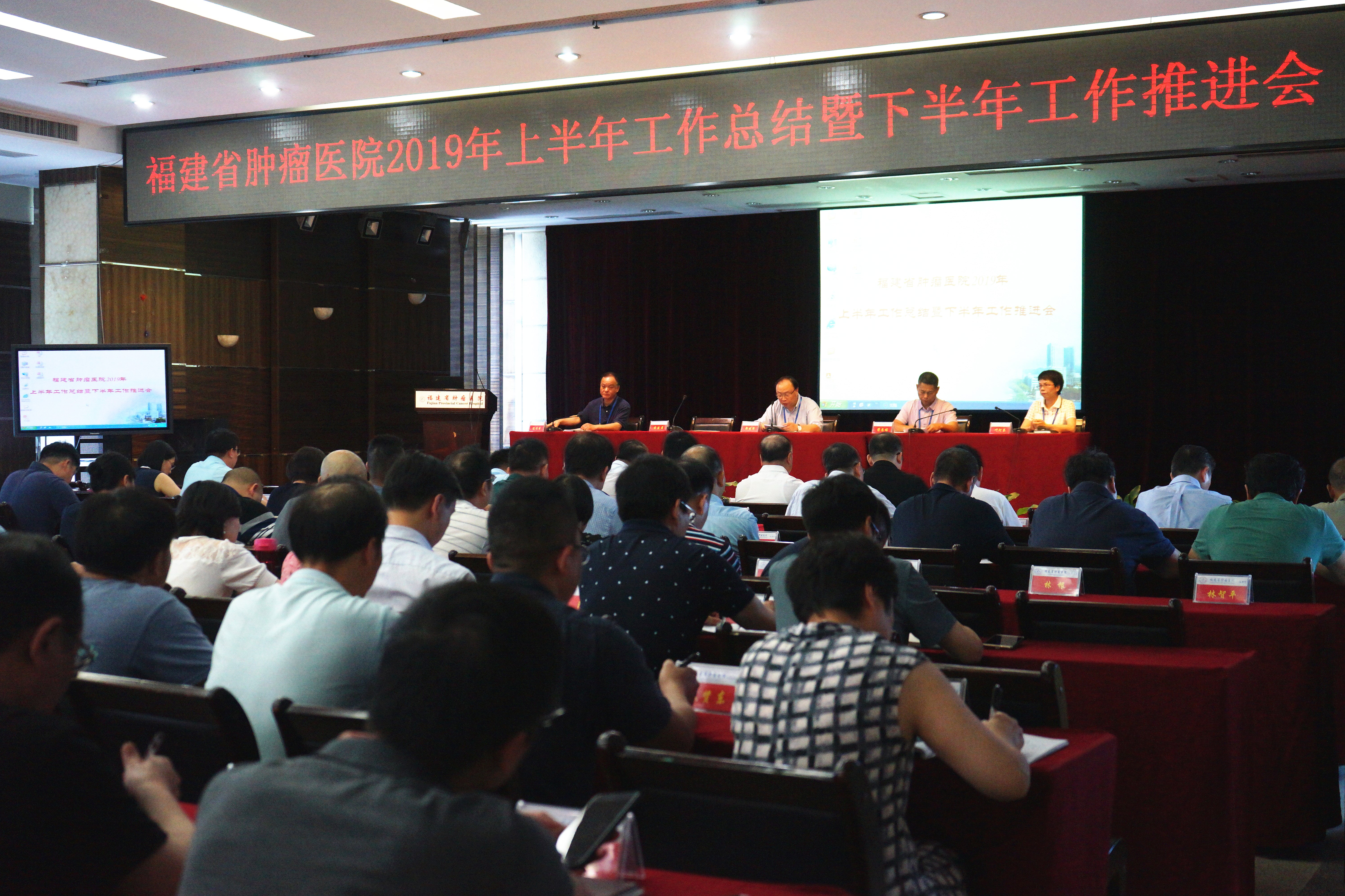 会上,党委书记、院长郑雄伟作了题为《不忘初心 牢记使命 振奋精神 砥砺前行》的报告,从七个方面系统总结了医院2019年上半年的主要工作,从十个方面部署了下半年的目标任务。郑院长在报告中指出,2019年上半年,我院全面深入学习贯彻习近平新时代中国特色社会主义思想和党的十九大精神,围绕深化医改、加快医疗卫生建设、健康福建建设等重点目标,全面落实省卫生健康委决策部署,强化临床医疗、护理服务、科研教学、人才队伍、医院文化等内涵建设,持续提升医疗护理质量和服务水平,取得新的成绩和进步。下半年,全院要以习近平新时代中国特色社会主义思想为统领,加强医院党的建设,继续开展“不忘初心、牢记使命”主题教育,保持只争朝夕、奋发有为的奋斗姿态和越是艰险越向前的斗争精神,争创国家肿瘤区域医疗中心建设目标,推进医院可持续发展,以优异成绩迎接新中国成立70周年。
