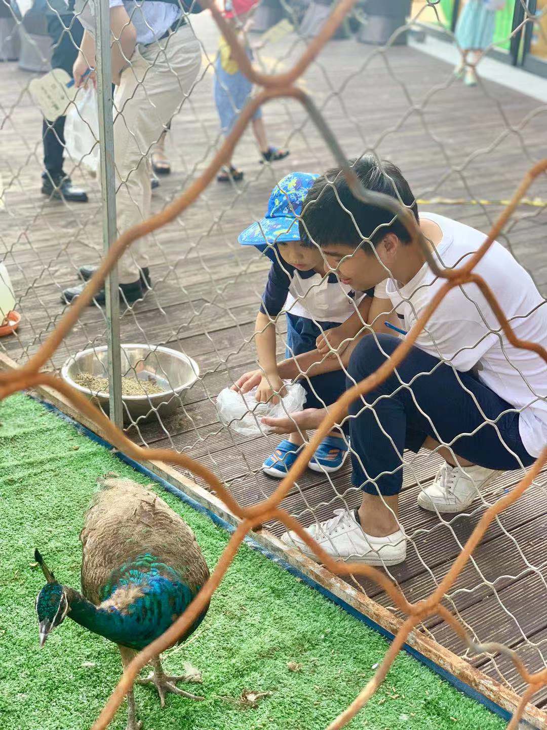 活动伊始,家长们带着孩子先和园区里的小动物来场亲密的接触。萌萌的兔子、小刺猬,可爱的梅花鹿、健硕的鸵鸟、美丽的孔雀,活泼的火鸡……,带来了孩子们的欢声笑语和温馨的亲子互动。