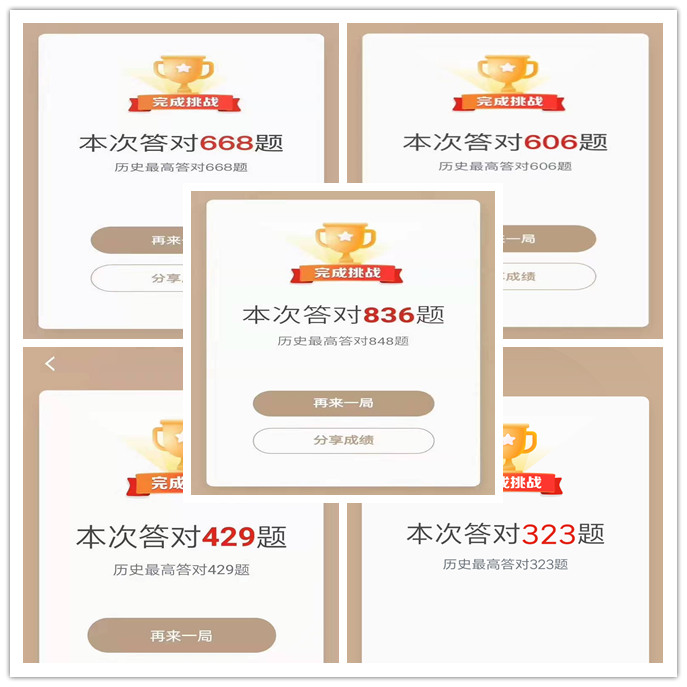 此次活动进一步点燃了广大党员、群众的学习热情,各支部中有集中答题互相交流的,也有在下班休息时间努力攻克难题的。活动中不断涌现答题学霸,刷新高分奇迹,财务科的唐柏辉更是一口气完成挑战,答对848题!活动开展的短短几天时间里,“你挑战答题最多对了多少?”成为大家见面、微信热聊话题,掀起了一股比学赶超的学习新高潮。