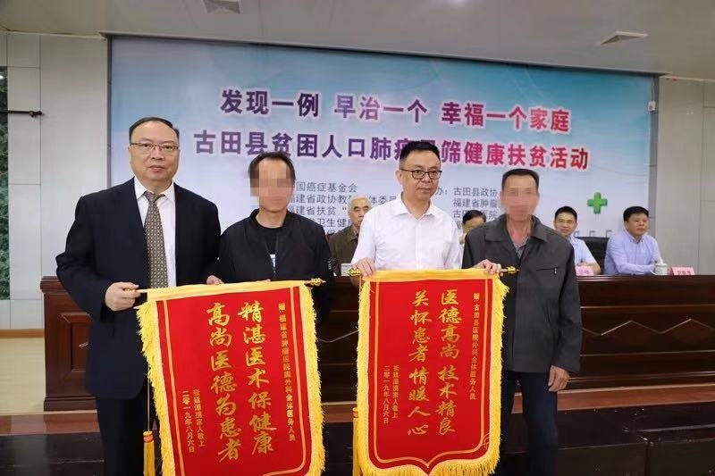 其中,2名肿瘤康复者特地赶来现场,向省肿瘤医院和古田县医院赠送锦旗。