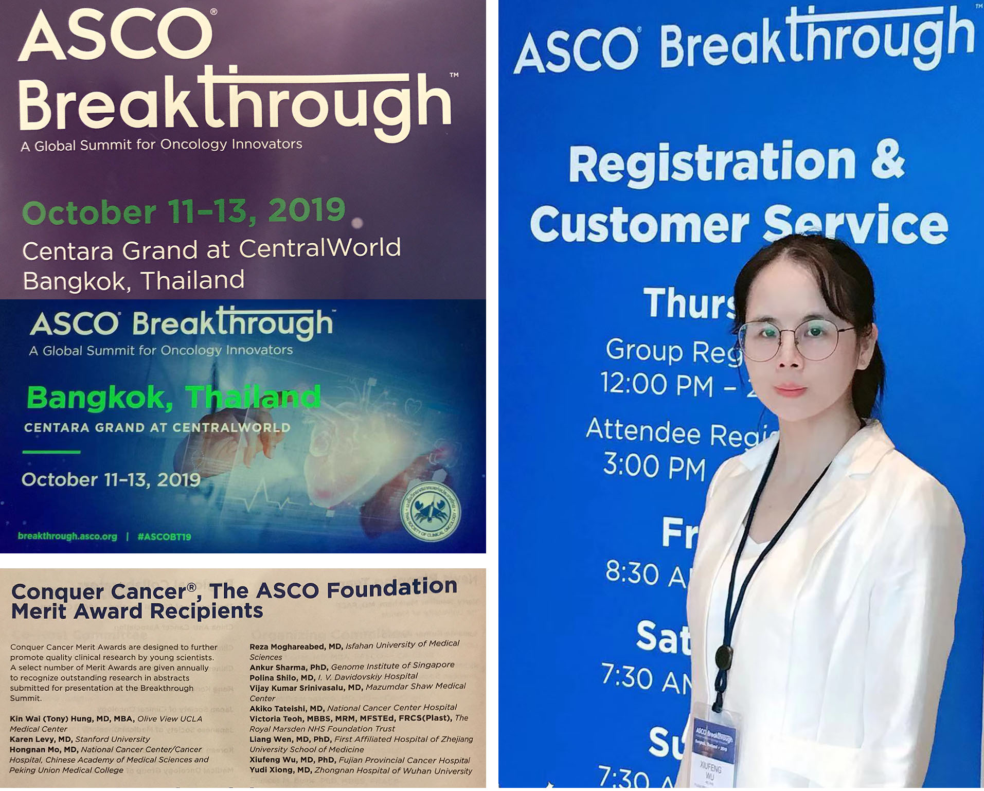 2019年美国临床肿瘤学会在亚洲两年1次的盛会(2019 American Society of Clinical Oncology Breakthrough)于2019年10月11日至2019年10月13日在泰国曼谷盛大召开。我院乳腺外科吴秀凤医师团队研究成果喜获ASCO Breakthrough顶尖的肿瘤研究学术奖项--2019 ASCO Conquer Cancer Foundation of Merit Award,获得$1000奖金。这是我院首次获得该奖项。