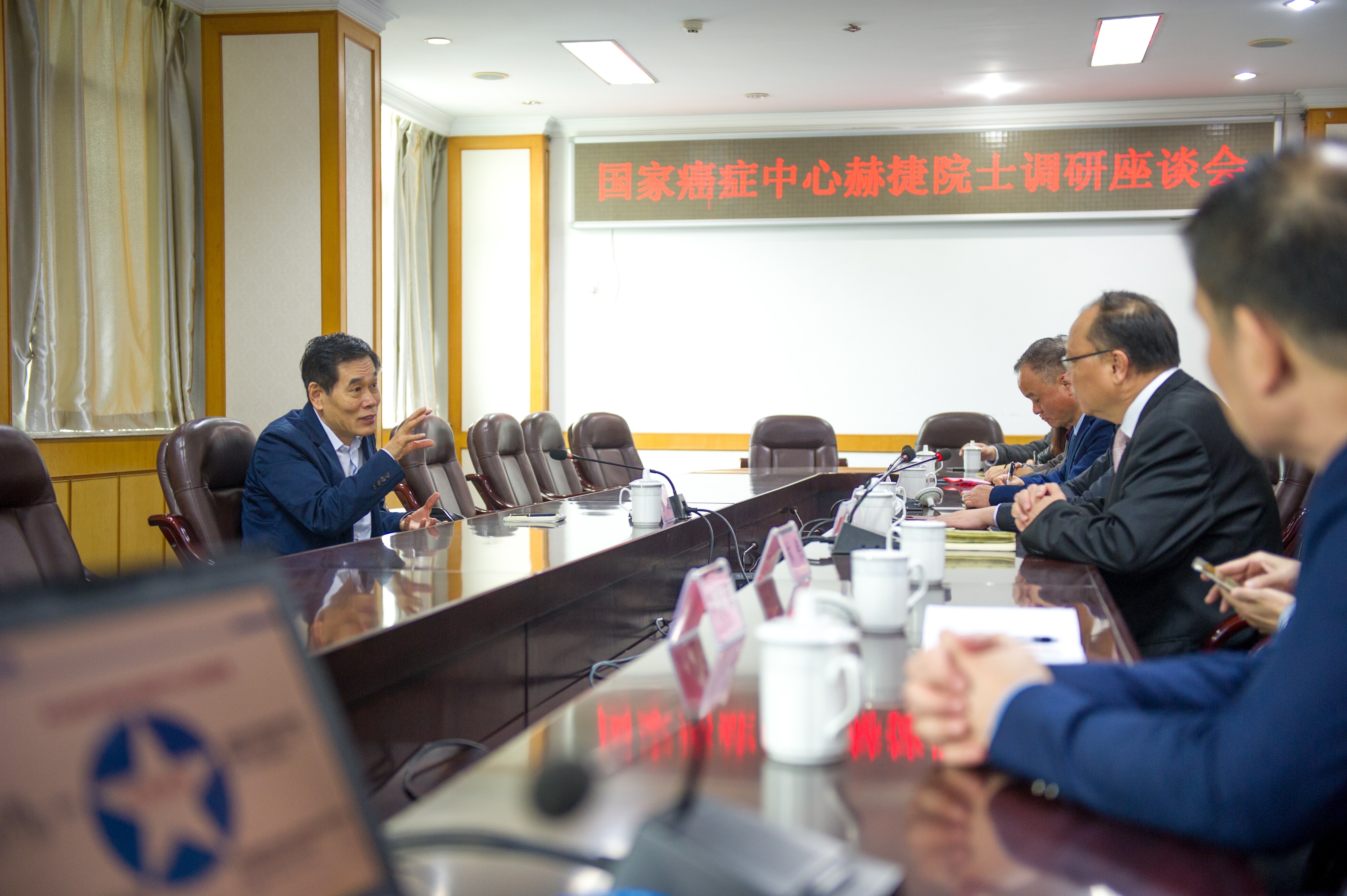 2019年12月15日,中国科学院院士、国家癌症中心主任、中国医科院肿瘤医院院长赫捷教授到我院调研。省卫健委副巡视员杨闽红出席会议并讲话,我院党政领导班子及相关科室负责人、临床专家教授20余人参加座谈会。我院党委书记郑雄伟主持座谈会,对赫捷院士的到来表示衷心感谢和热烈欢迎。