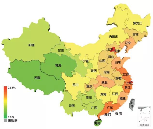 习近平总书记在“科技三会”上的讲话中指出,“没有全民科学素质普遍提高,就难以建立起宏大的高素质创新大军,难以实现科技成果快速转化”。公民科学素质的水平决定着建成创新型国家,建设世界科技强国的人力资源基础。定期开展公民科学素质调查,是加强公民科学素质监测评估和服务公民科学素质建设的重要手段。 具备科学素质是对公民的较高要求。在保证调查指标和评价标准国际、国内连续可比的前提下,基于公民科学素质指标结构,从题库生成测评量表进行调查。 各地区的公民科学素质水平普遍大幅提升,上海和北京的公民科学素质水平超过了20%,公民具备科学素质的比例分别为21.88%和21.48%,已接近美国2004年24.5%的水平。天津位居第三 , 公民具备科学素质的比例为14.13%,超过了欧洲27国 2005年13.8%的平均水平。 江苏、浙江和广东的公民科学素质水平超过了10%,山东、福建、湖北和辽宁超过了全国平均水平。安徽、河北、吉林等13个省、市、区和新疆生产建设兵团都超过2015年6.20%的全国平均水平。新疆、广西、甘肃、云南和贵州5省、区的公民科学素质超过5%。海南、青海和西藏的公民科学素质水平仍然较低。
