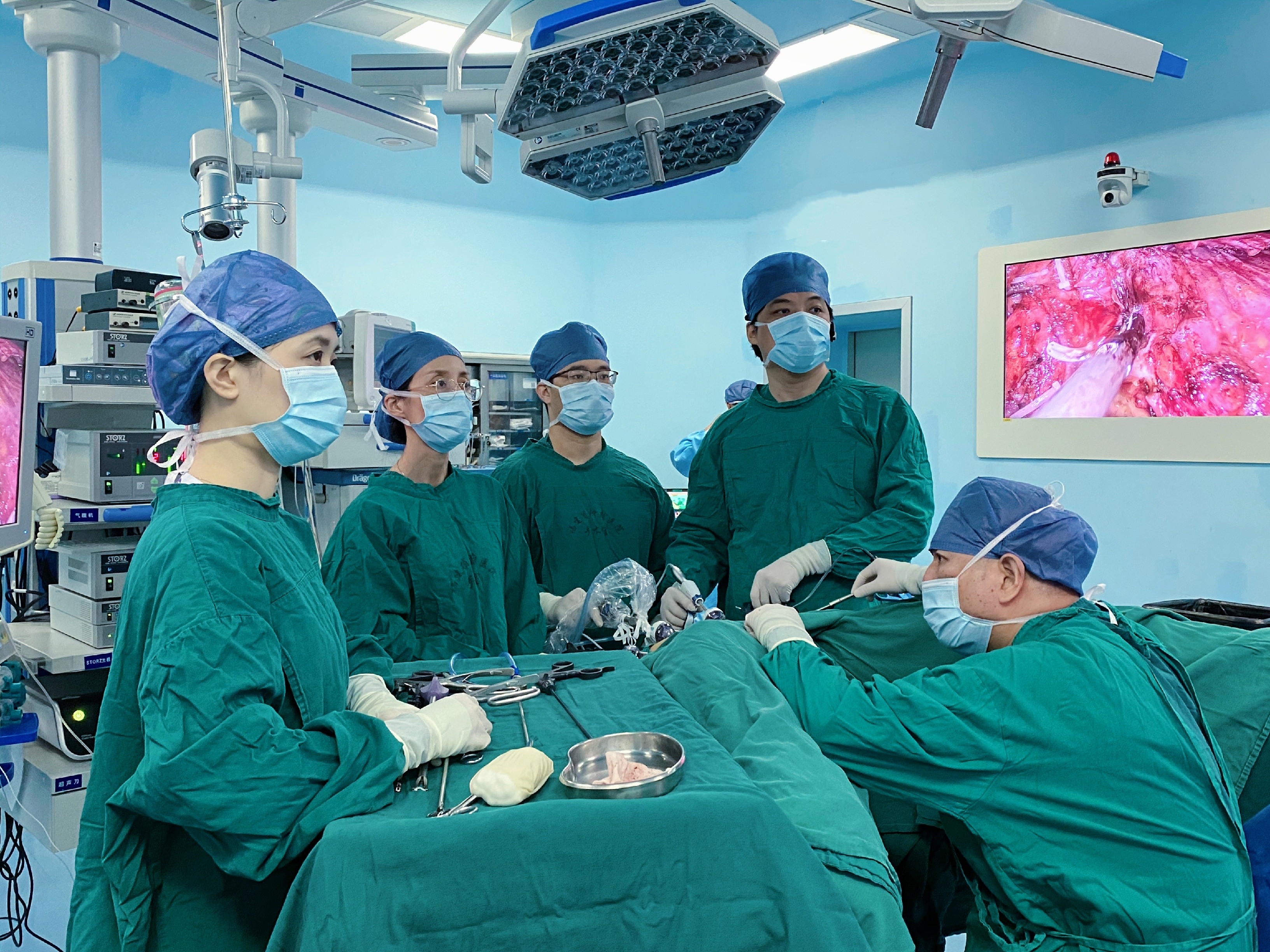 我院妇科专家分别演示了妇科恶性肿瘤中腹腔镜手术难度最大的三种术式:腹腔镜下子宫内膜癌全面分期手术、腹主动脉旁淋巴结清扫术、免举宫宫颈癌根治术。手术过程流畅、解剖层次清晰,体现了我院妇科手术专家高超的手术技巧及娴熟的团队合作。线上点评嘉宾对我院手术专家精湛技艺高度赞扬。