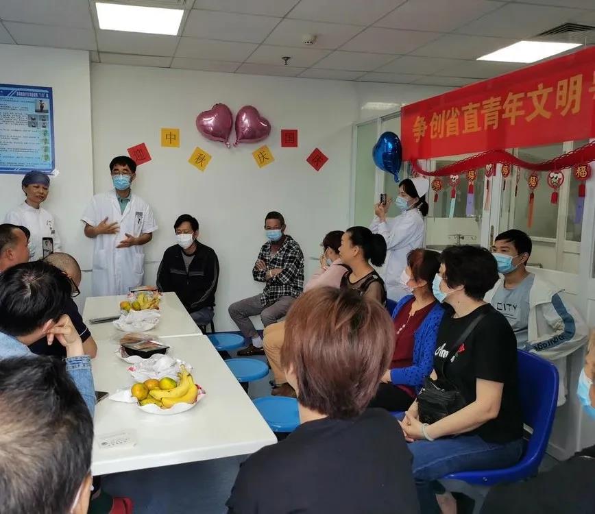为了感受节日气氛,医护人员还为大家准备了月饼水果等茶点,组织病友们围坐在一起开展座谈会,病友和家属积极提出问题及建议,医生护士们耐心地解答大家的问题,为了让病人及家属把健康教育知识牢记于心,特意准备了有奖问答游戏环节让大家更印象深刻。