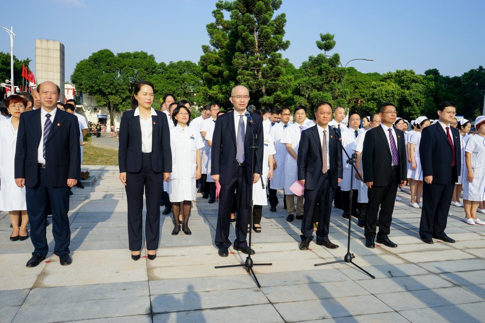 陈传本院长指出,2020年全体医务人员在抗击疫情的过程中,用奋斗与汗水诠释着白衣天使的职责。在这特殊的一年,在祖国母亲71岁生日的这一天,医院组织员工在新修建的文化广场举行国庆升旗仪式,有着特殊的意义,不仅增强全院干部职工的凝聚力,表达对伟大祖国的美好祝福,更大大激发了大家的爱国之情。