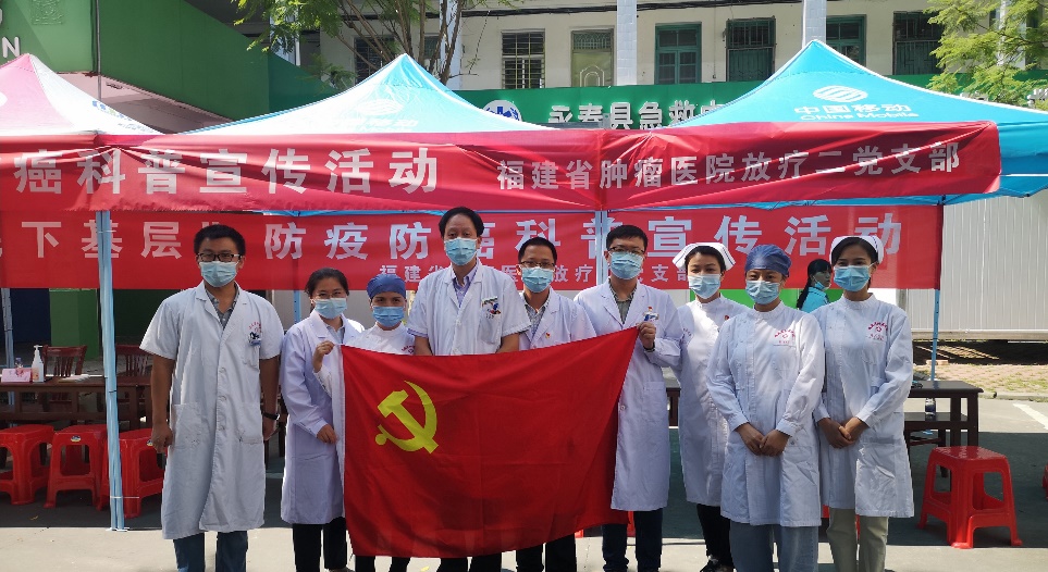 为普及防疫抗癌健康知识,提高群众防控意识,10月2日上午,放疗二党支部书记李建成教授带领党员们前往永春县蓬壶镇医院为当地群众开展科普宣传活动。