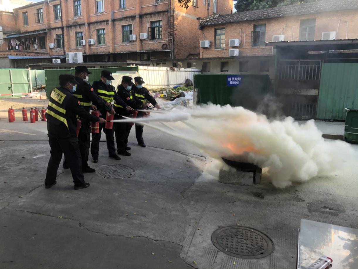 讲座结束后,组织全体参训人员进行灭火器操作实战演练。