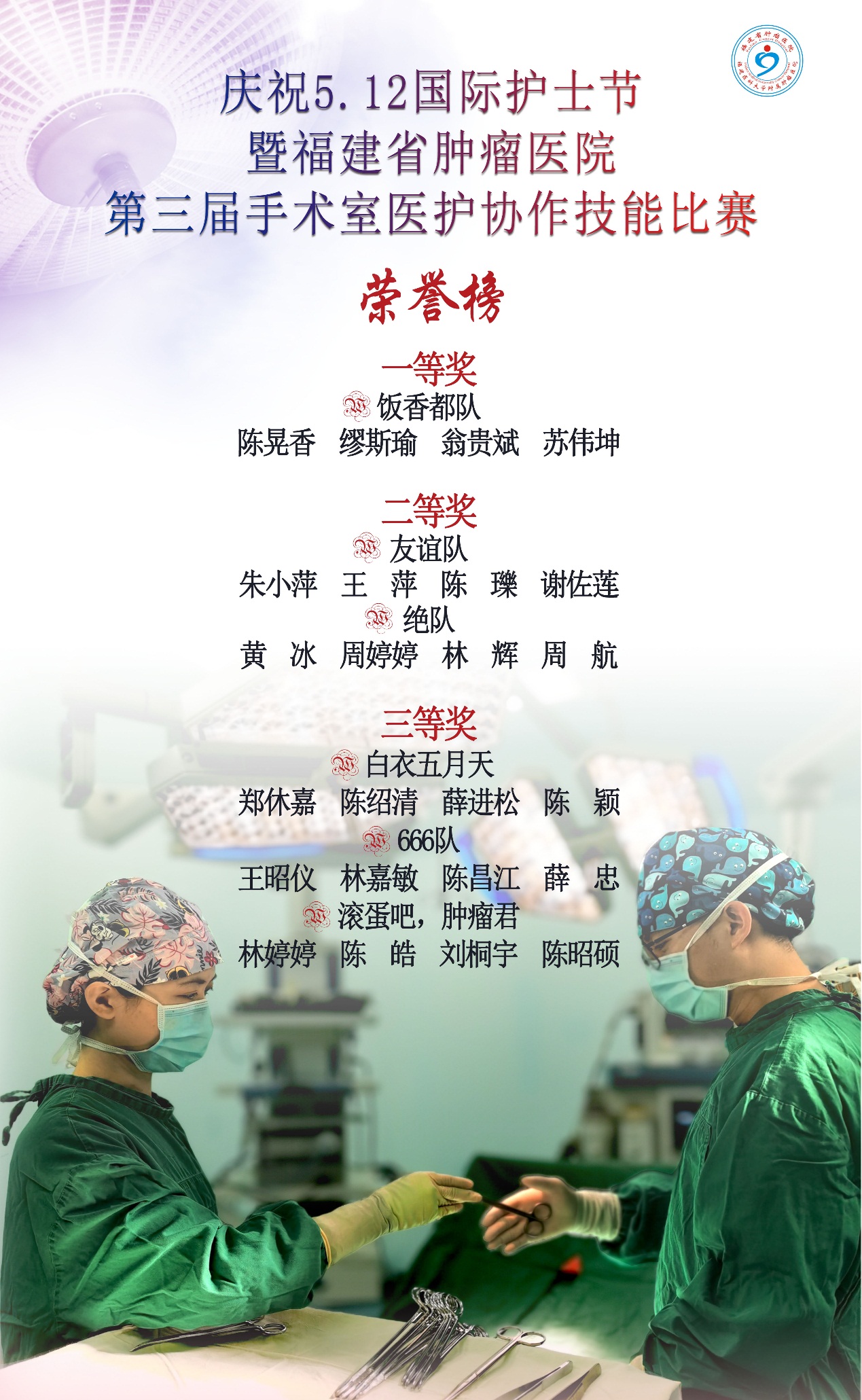 全院外科医生和手术室护士齐动员,以“2名外科医生+2名手术室护士”的模式组成11个团队。围绕“精诚携手、完美取瘤、微创竞技、破橘重圆”4个项目展开竞技。