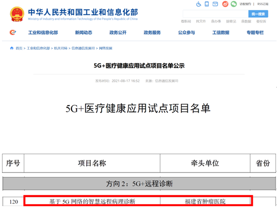 日前,国家工信部和卫健委联合发布首批“5G+医疗健康”应用试点项目名单。我院病理科陈刚主任组织申报的《基于5G网络的智慧远程病理诊断》,经过项目申报、专家初审、复审等程序,成功入选“5G+远程诊断”方向,这是我省23个入围项目中首个以病理科牵头申报的项目。