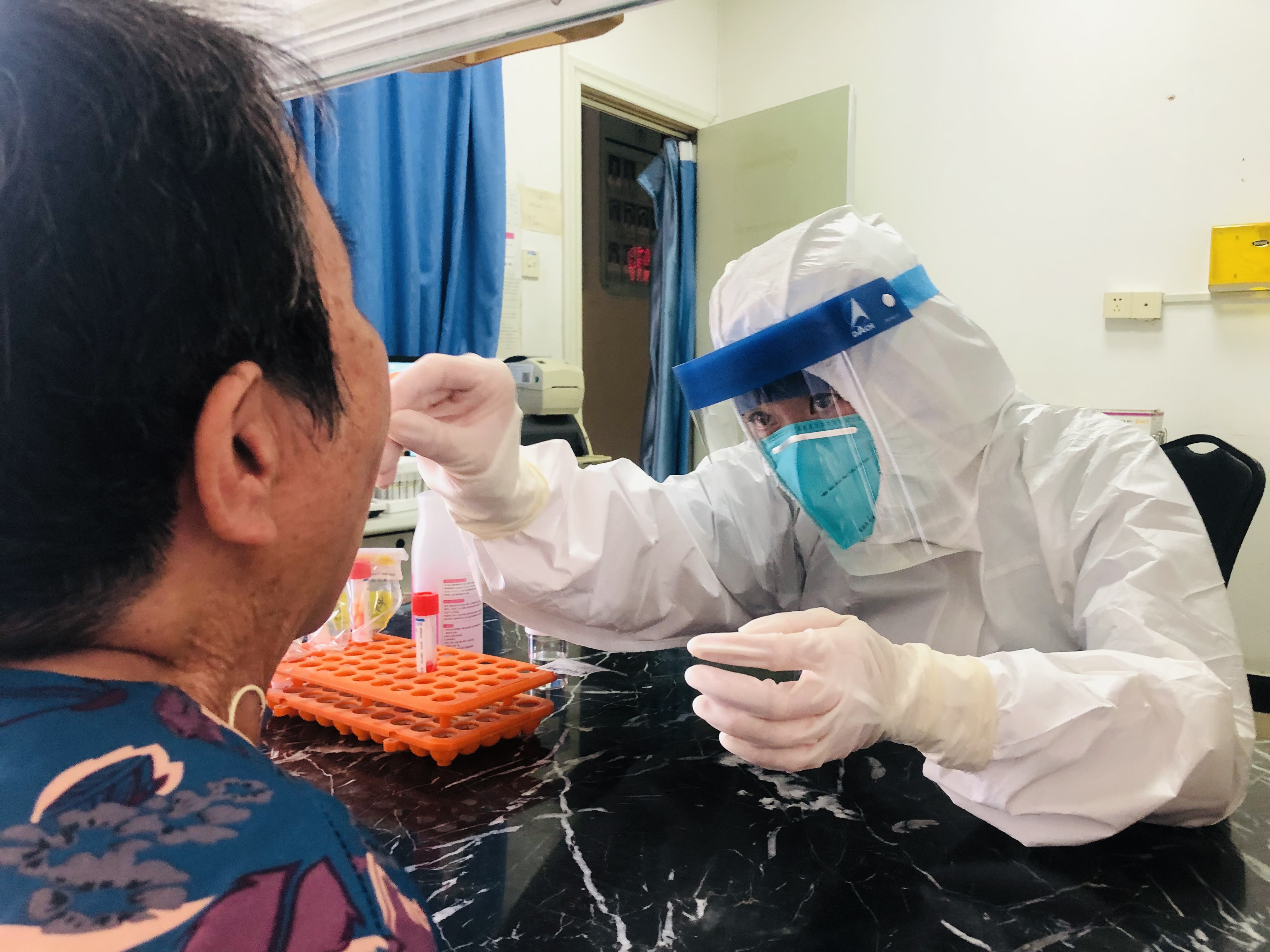 在休假中的护士杨莹、陈颖、黄燕青、范琳琳等主动提出上班申请,要求参加核酸检测采样工作。