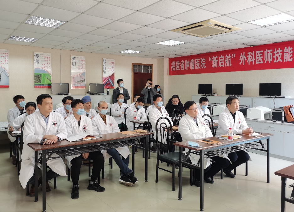“新启航-福建省肿瘤医院外科医师技能培训系列课程是福建省肿瘤医院外科教研室及外科临床技能培训中心与创新平台2022年首个培训项目,课程已面向我院入职三年内外科住院医师进行规范化、系统化的外科技能培训,其特色在于将外科技能分阶梯式训练,内容涵盖外科基础缝合、美容缝合、进阶缝合(胃/肠-肠、胰-肠)、肝脏血管缝合、显微外科培训、腔镜模拟技能及能量器械培训等,结合线上线下教学管理模式,“闭环式”培训外科青年医师。