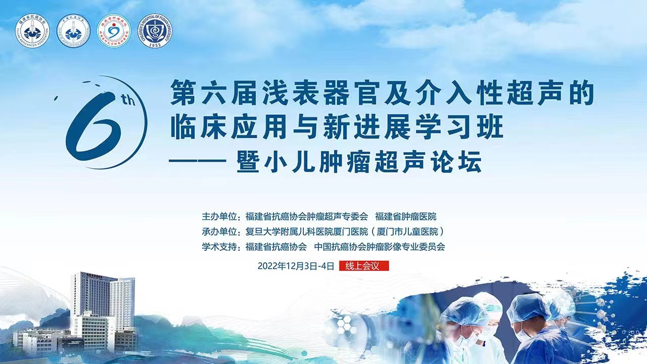 为加强超声医学诊疗专业领域学术交流,推动介入性超声及超声新技术的规范化发展,促进多学科交流合作,2022年12月3日至4日,由福建省抗癌协会肿瘤超声专委会、福建省肿瘤医院主办,复旦大学附属儿科医院厦门医院(厦门市儿童医院)承办的“第六届浅表器官及介入性超声临床应用与新进展学习班”顺利举行,近1万名学员于线上共飨学术盛宴。