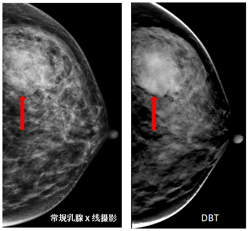 DBT(Digital Breast Tomosynthesis),意为“数字化乳腺断层摄影”,是一种三维成像技术。其原理是X线管球在有限的角度范围内旋转,进行一系列低剂量曝光,在较短时间内得到一系列断层图像。扫描完成后,计算机利用算法把图像重建为平行于探测器且间距为1mm左右的影像相对于传统的二维乳腺摄影技术,重建后的三维断层影像明显减少了组织重叠。致密性乳腺、微钙化、结构扭曲的患者就很适合采用这种检查方法,避免因腺体太过致密而掩盖了小病灶的显示。