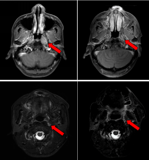2016年7月,患者因左侧耳鸣一个多月到医院就诊,经过一系列检查,最终确诊为鼻咽非角化性癌,分期为T3N1M0 Ⅲ期,属于局部晚期鼻咽癌。我院鼻咽癌诊治中心邱素芳主任医师团队接诊后,为其量身制定了“诱导化疗+同步放化疗+辅助化疗”综合方案,在放疗环节凭借精细靶区勾画与剂量调控,实现“精准打击”。治疗结束后复查,肿瘤已基本退缩。