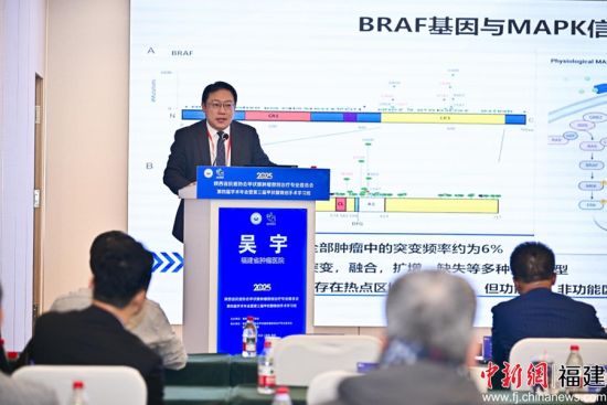 福建省肿瘤医院头颈肿瘤外科主任医师吴宇在第28届中国肿瘤临床学会CSCO年会甲状腺肿瘤分会场发言。受访者 供图