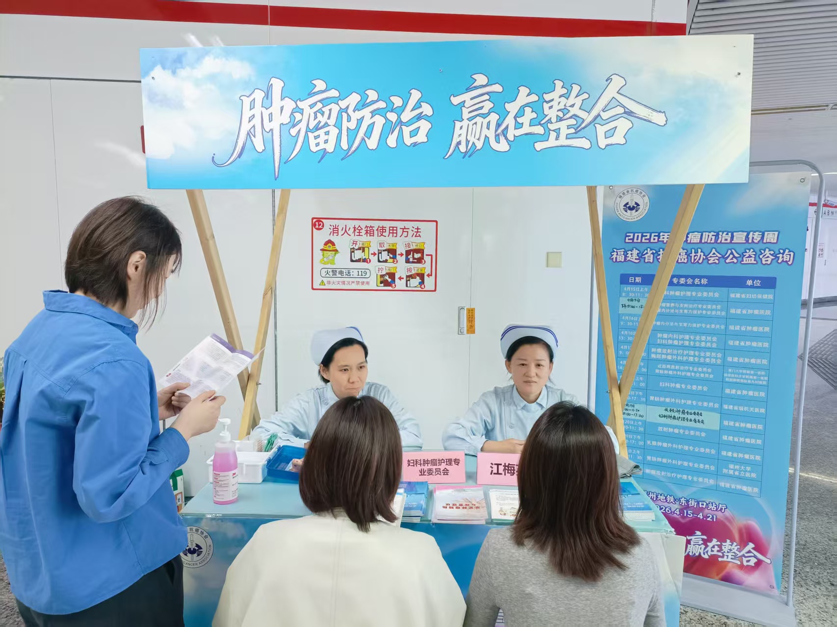 以党员为先锋组成的医护团队围绕妇科肿瘤早筛早治、妇科肿瘤常见症状、宫颈癌疫苗的接种、女性日常生活保健等热点问题,为市民面对面答疑解惑、发放科普手册。同时,护理人员现场提供耳穴贴压、血压测量等特色护理服务,用专业技术缓解市民不适、普及健康知识,引导大家树立“早筛查、早诊断、早治疗”的肿瘤防治理念。